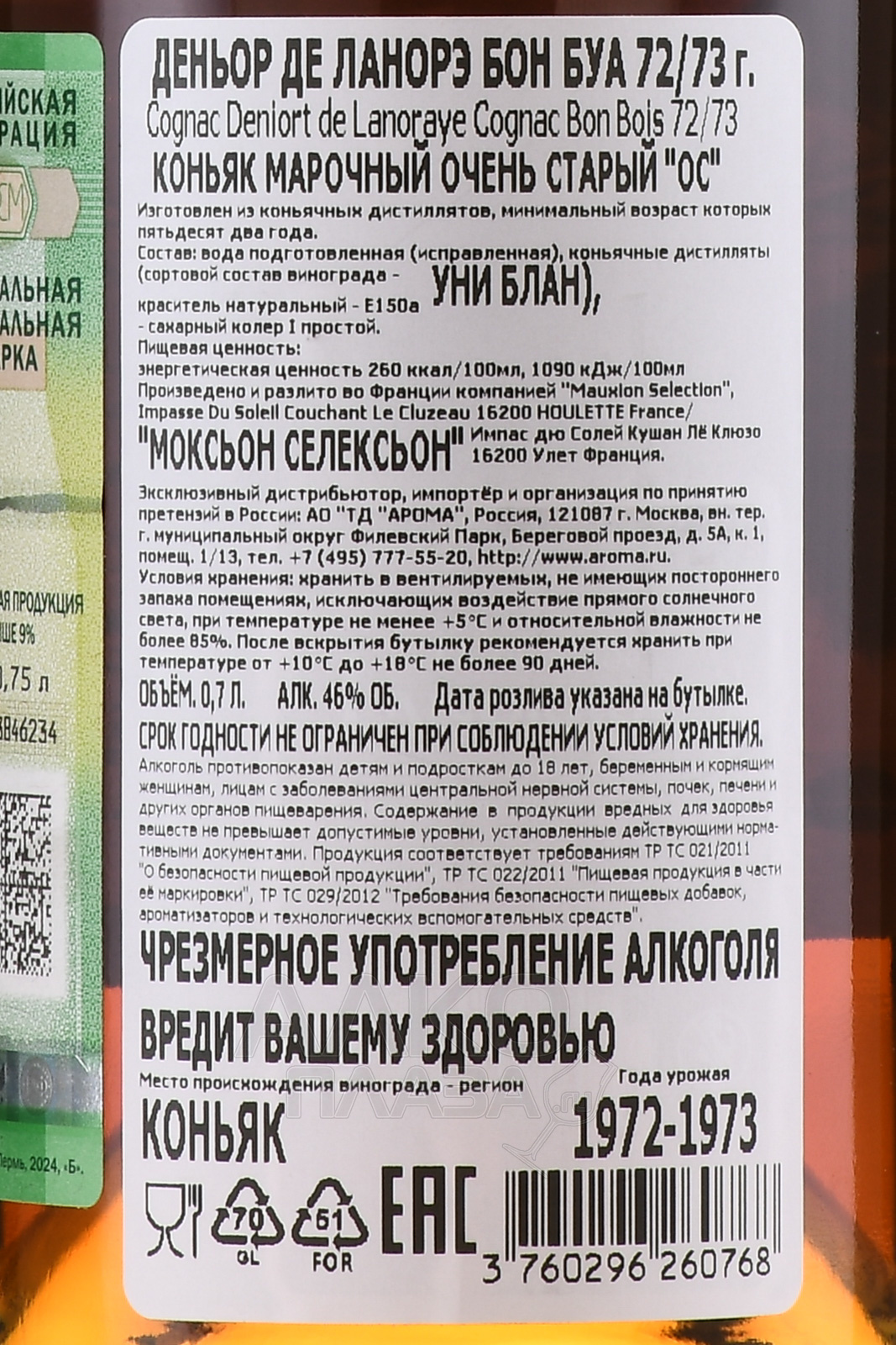 Deniort de Lanoraye Bons Bois Lot 72/73 - коньяк Деньор де Ланорэ Бон Буа Лот 72/73 0.7 л в д/у