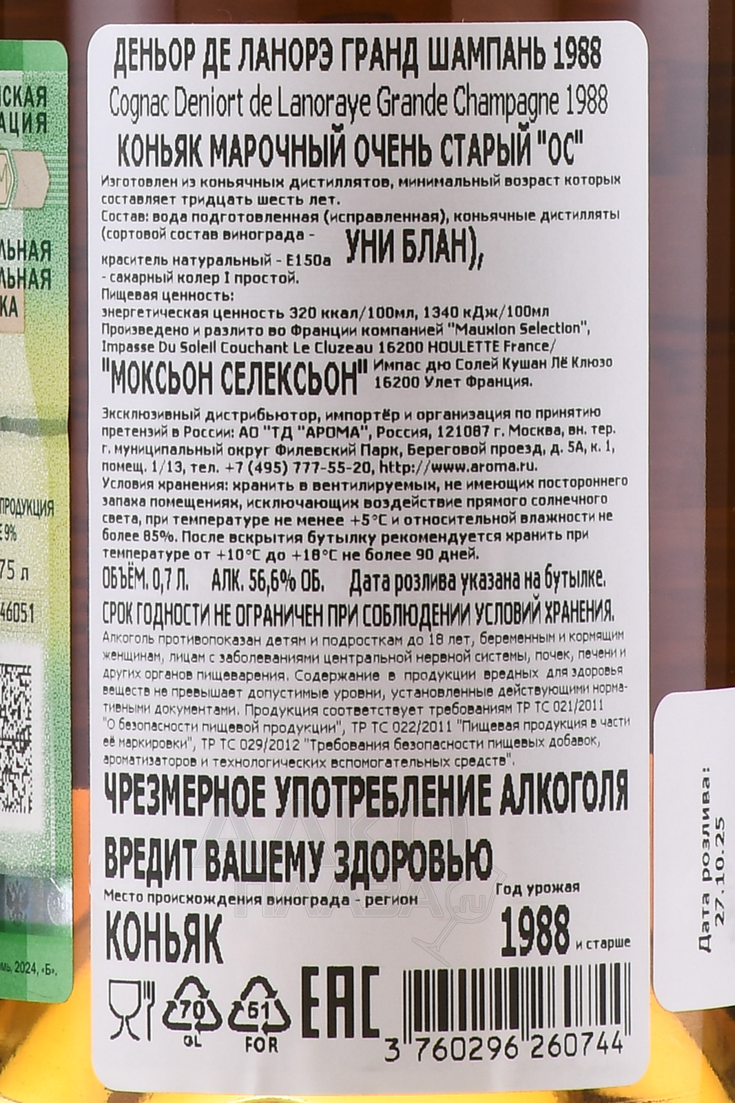 Deniort de Lanoraye Grande Champagne 1988 - коньяк Деньор де Ланорэ Гранд Шампань 1988 год 0.7 л в д/у