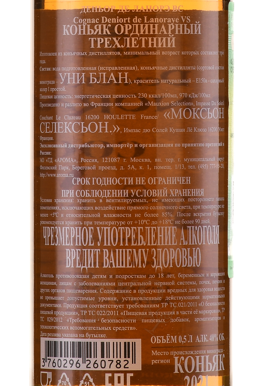 Deniort de Lanoraye VS 3 Years Old - коньяк Деньор де Ланорэ ВС 3 года 0.5 л в п/у