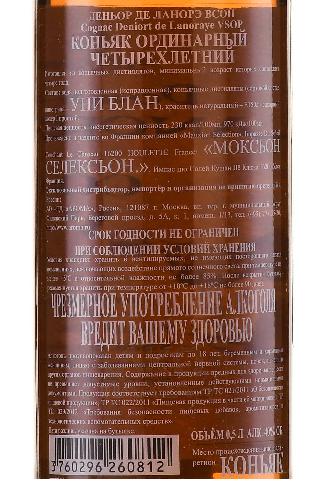 Deniort de Lanoraye VSOP 4 years old - коньяк Деньор де Ланорэ ВСОП 4 года 0.5 л в п/у