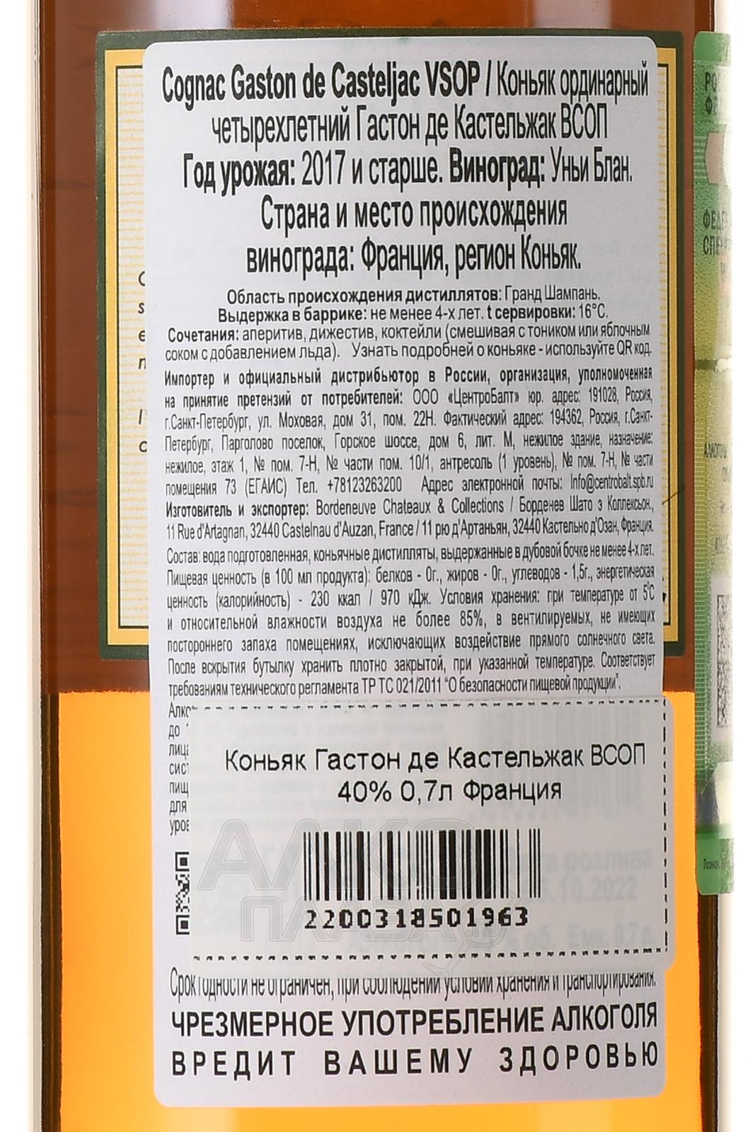 Gaston de Casteljac VSOP - коньяк Гастон де Кастельжак ВСОП 0.7 л