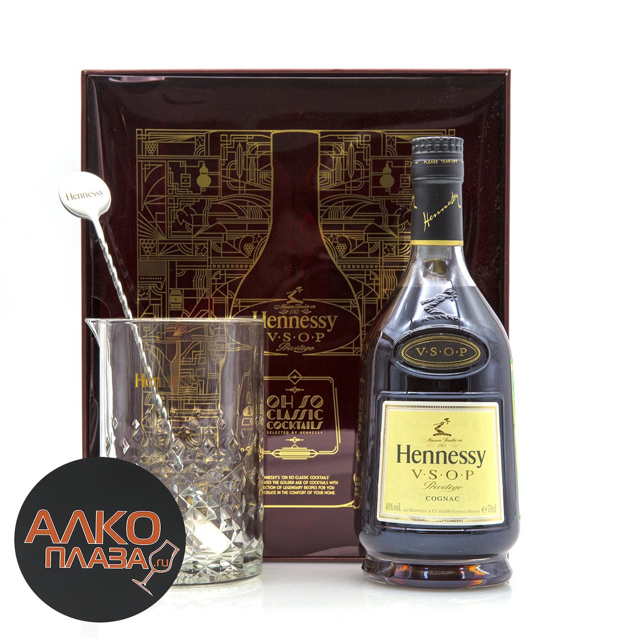 Hennessy VSOP Privilege whit glass gift box - коньяк Хеннесси ВСОП Привилеж с коктейльной ложкой и стаканом 0.7 л в п/у