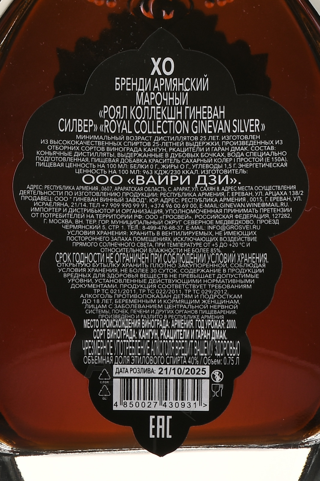 Коньяк Гиневан Роял Коллекшн Сильвер ХО 25 лет 0.75 л в п/у