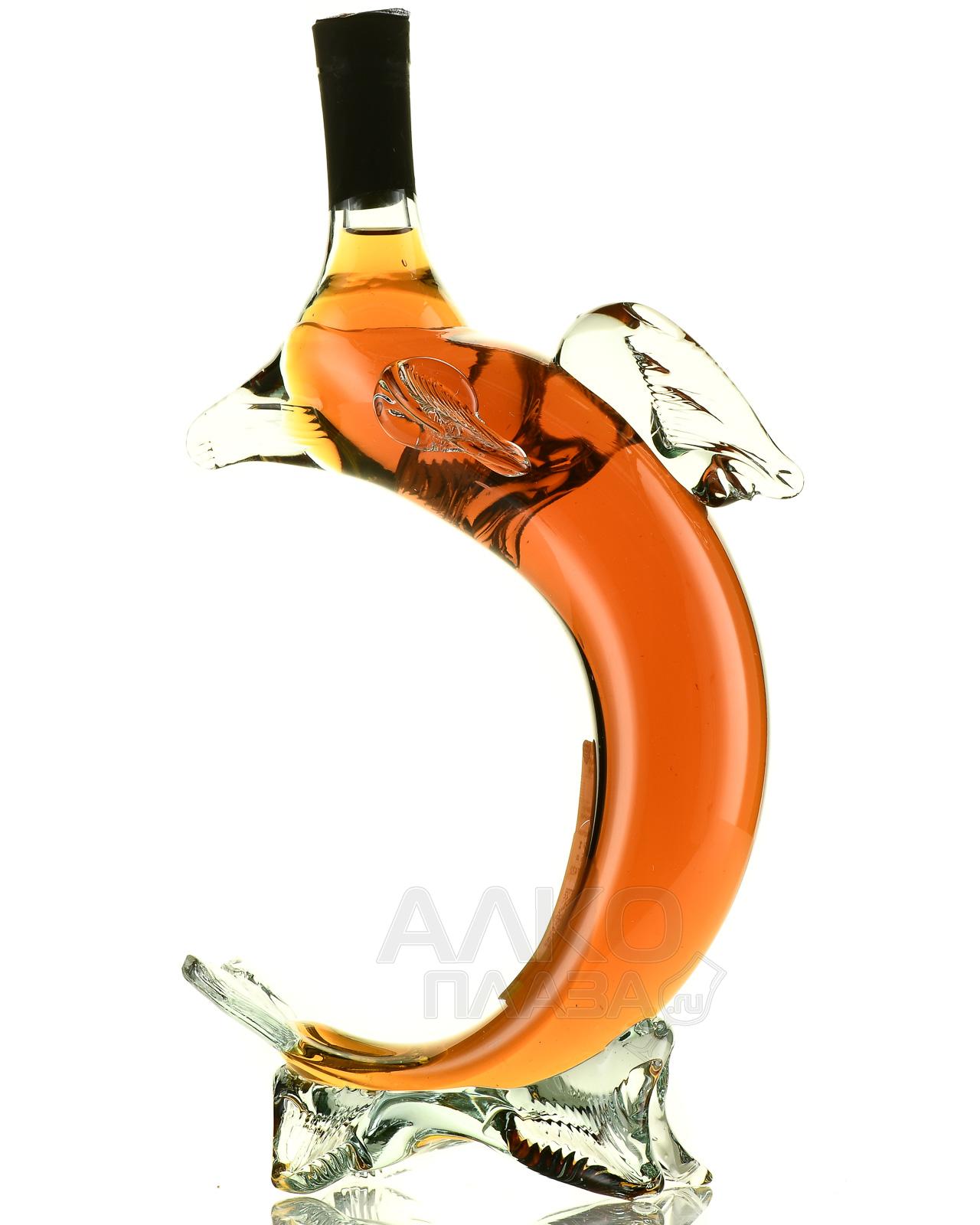 Коньяк Ijevan 5 years 5 лет 0,2 л Дельфин выпущен в рамках сувенирной линейки известной армянской торговой марки, которая разлила этот сорокаградусный напиток с классическим характером по бутылкам с очертаниями дельфина. Подобное оформление делает спиртное прекрасным подарком, запоминающимся не только приятным вкусом, но и необычным визуалом. В основе коньяка присутствуют тщательно отобранные спирты на базе трех автохтонных сортов винограда 2019 урожайного года, проведшие в дубовых бочках как минимум пять лет.