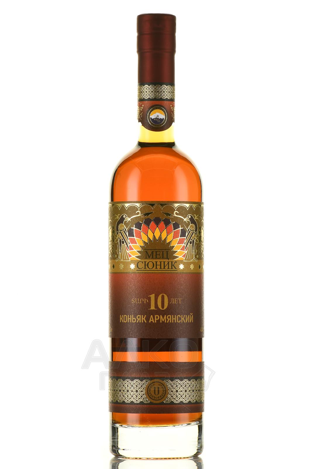 Коньяк КС Мец Сюник 10 лет 0,5 л в п/у представлен в подарочном формате и может стать подходящим презентом по особому поводу. Его можно вручить ценителю элитного армянского алкоголя и преподнести по случаю розовой (оловянной) свадьбы. Также его можно выбрать для пополнения личной коллекции. Марочный коньяк воплощает в себе уникальный характер Армении. Он производится из автохтонных сортов, которые культивируются в Араратской долине и перерабатываются по исконной технологии. Не менее 10 лет дистилляты проводят в бочках из кавказского дуба. Коньяк бутилируется при крепости 40% и упаковывается в красивый картонный гифт-бокс.