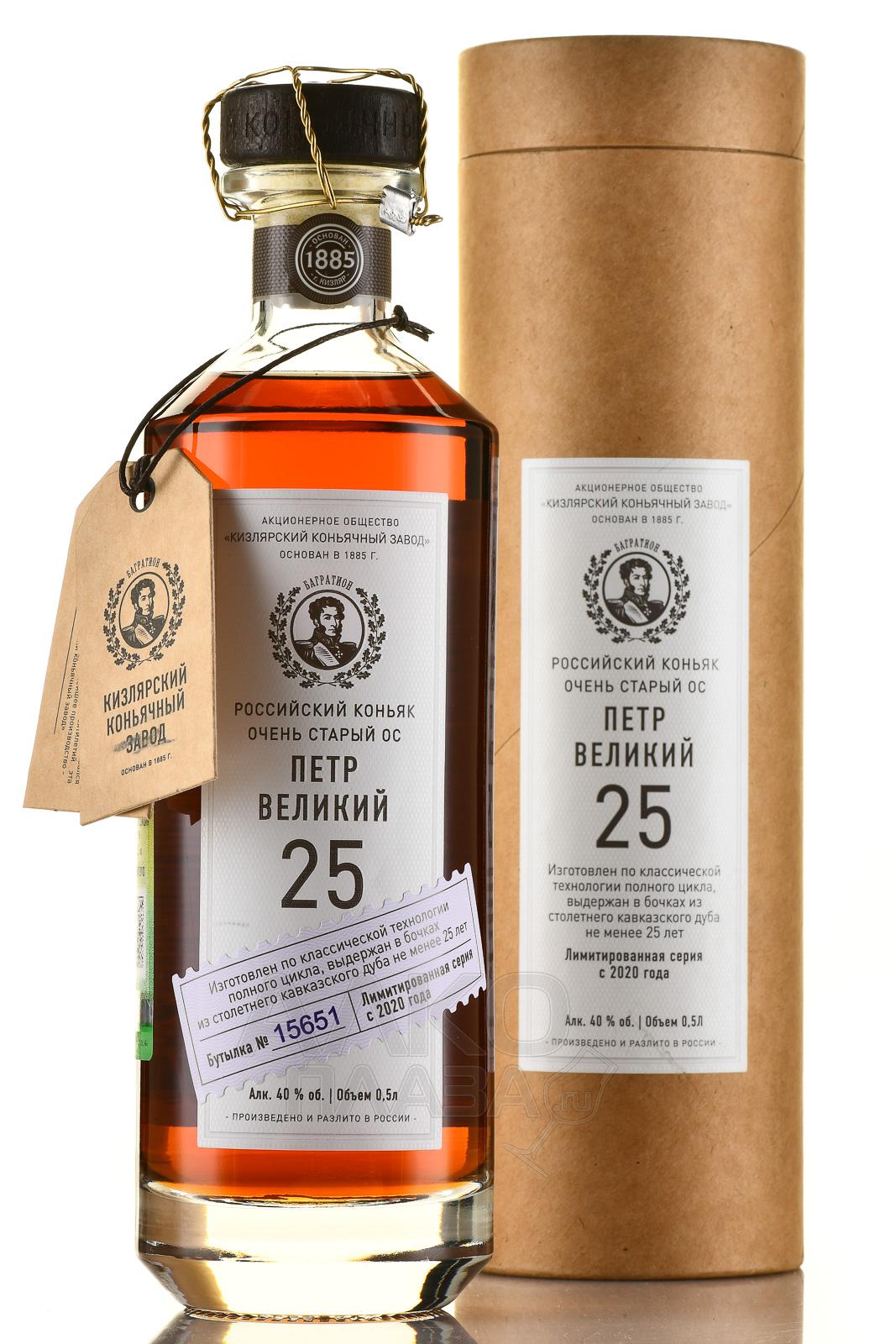 Коньяк ОС Петр Великий 25 лет 0.5 л в тубе — солидный презент для ценителя, который стоит выбрать для особенно торжественного повода. Марочный алкоголь из особенной коллекции ККЗ олицетворяет собой талант кавказских мастеров, исконные традиции и многолетний опыт производства. В состав коньяка входят дистилляты, длительное время выдерживавшиеся в бочках из кавказского дуба. Самые молодые из них имеют возраст 25 лет. Коллекционный алкоголь представлен в сувенирной тубе.