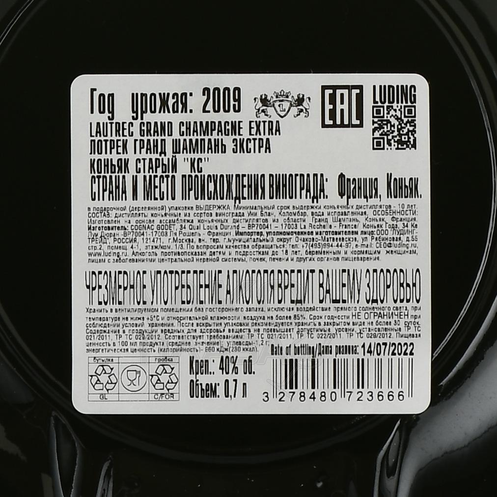 Lautrec Grande Champagne Extra in wooden box - коньяк Лотрек Гранд Шампань Экстра 0.7 л в д/у