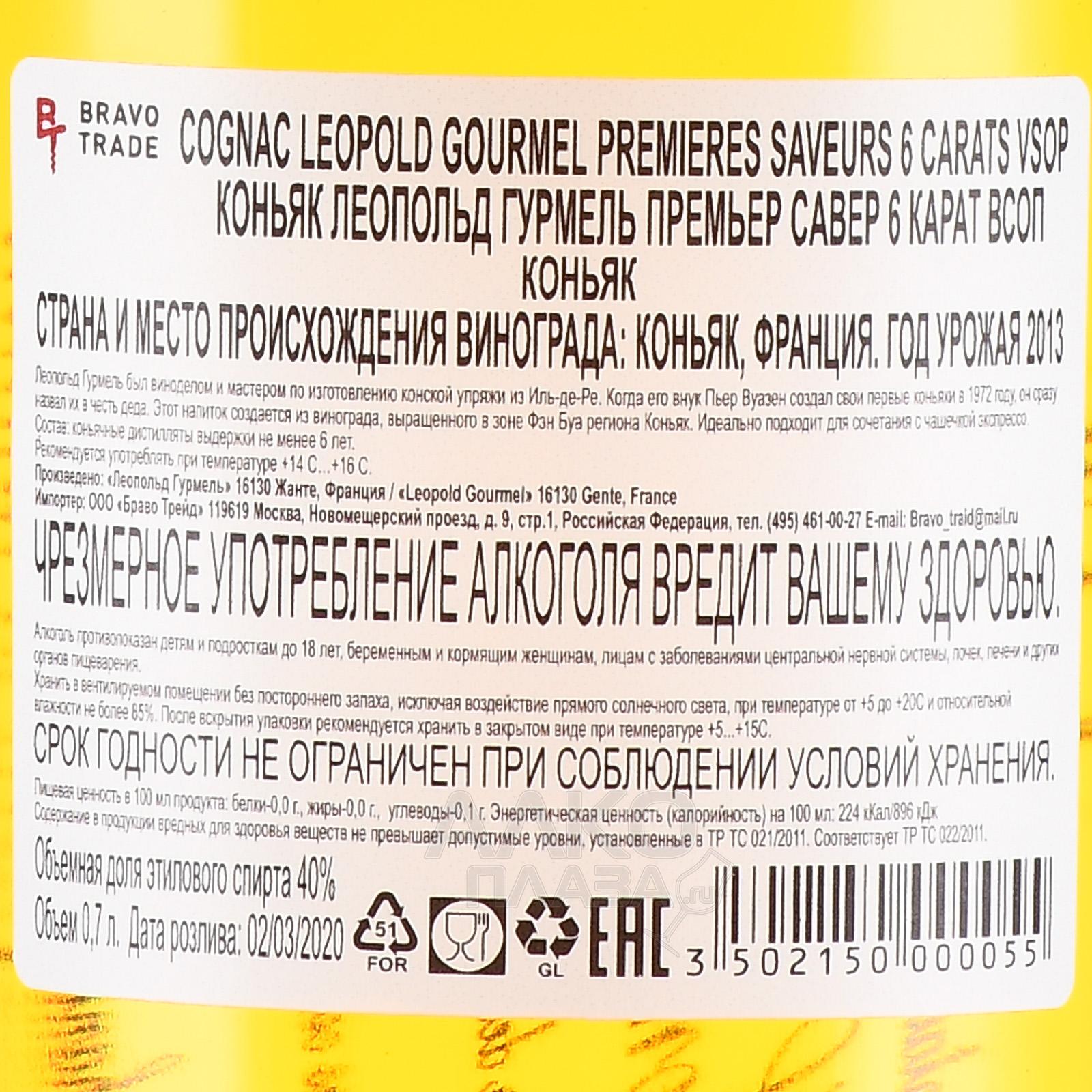 Leopold Gourmel Les Premieres Saveurs - коньяк Леопольд Гурмель Первые Ароматы 0.7 л