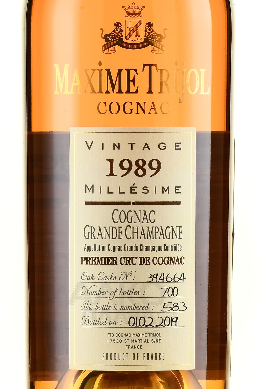 Maxime Trijol Grande Champagne Premier Cru de Cognac 1989 - коньяк Максим Трижоль Гранд Шампань Премье Крю де Коньяк 1989 год 0.7 л в д/у