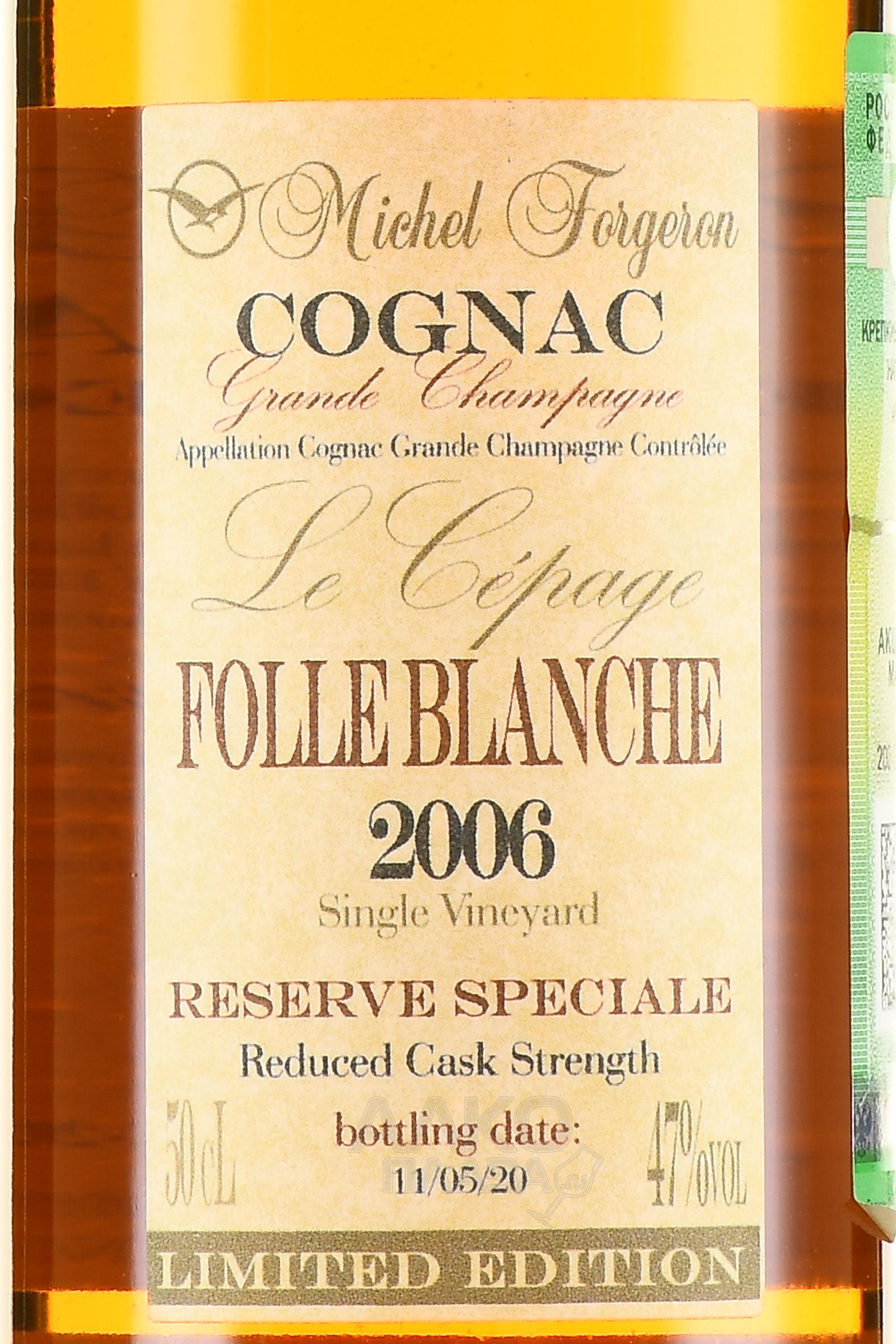 Michel Forgeron Folle Blanche 2006 - коньяк Мишель Форжерон Фоль Бланш 2006 год 0.5 л в п/у