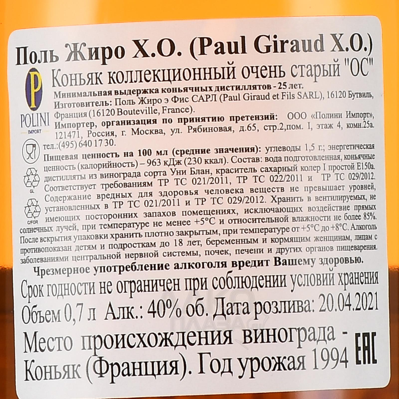 Paul Giraud Grande Champagne XO 25 - коньяк Поль Жиро Гран Шампань ХО 25 лет 0.7 л в п/у