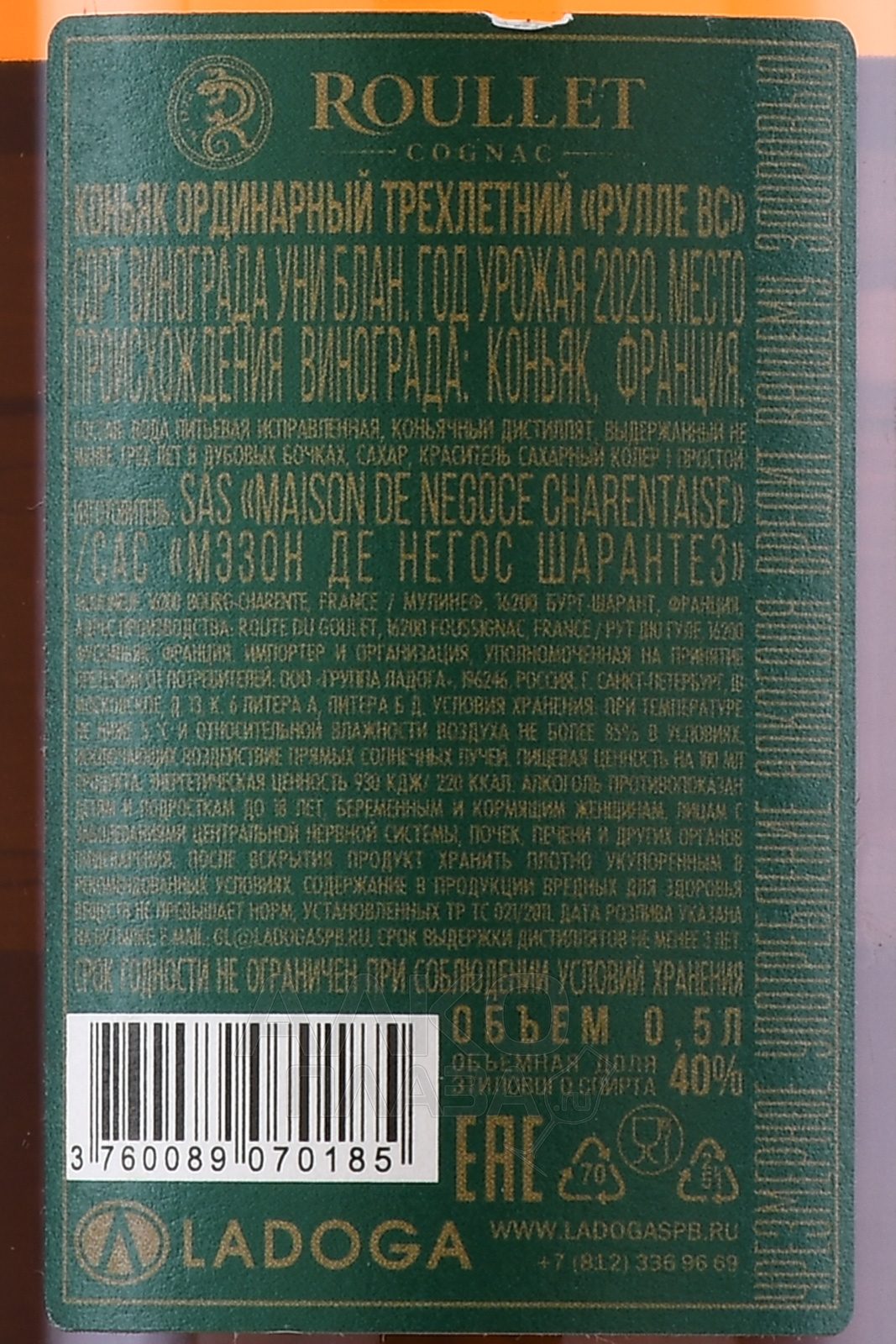 Коньяк Roullet VS производится во Франции, регионе Cognac, из тщательно отобранного винограда с угодий этой области. Для создания сорокаградусного напитка применяются только спелые ягоды одного автохтонного сорта, подвергаемые традиционной ферментации, дистилляции и выдержке в дубовых бочонках длительностью от трех лет.
