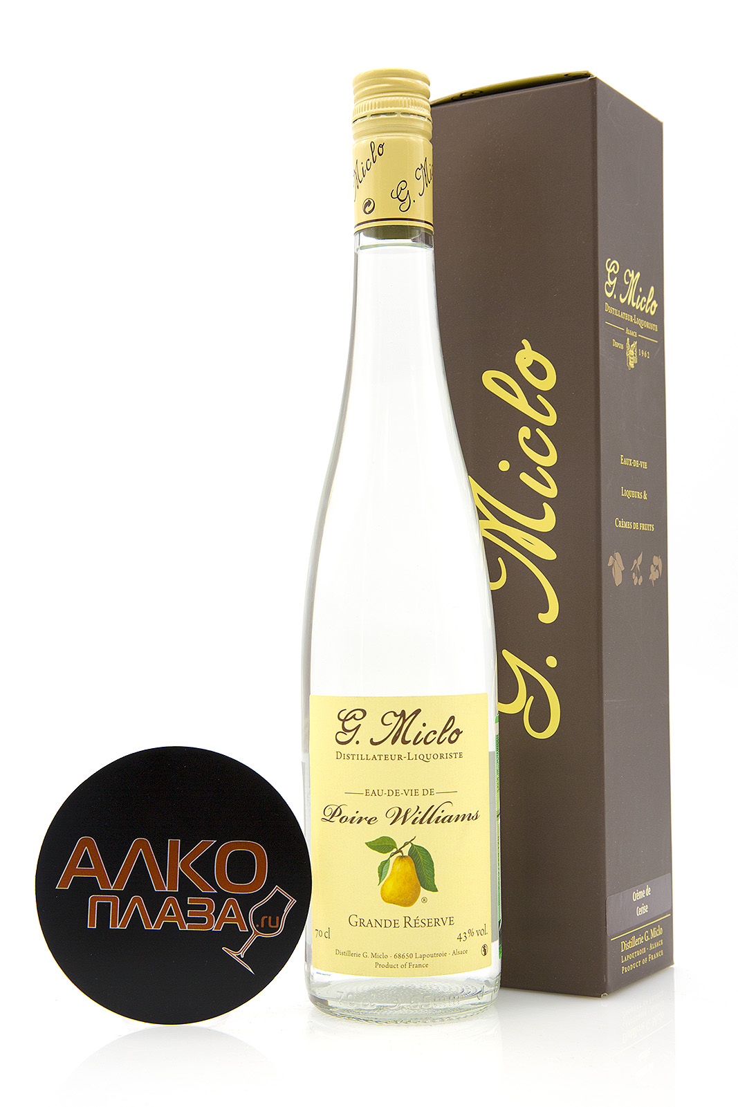 Фруктовый бренди, созданный путем двойной дистилляции груши сорта Вильямс. Фрукты собираются вручную и тщательно сортируются, благодаря такому отбору напиток получает исключительный натуральный аромат, ведь неслучайно "Eau de vie" переводится как "вода жизни". В аромате ощущаются тона груши, белых цветов. Вкус мягкий, нежный.