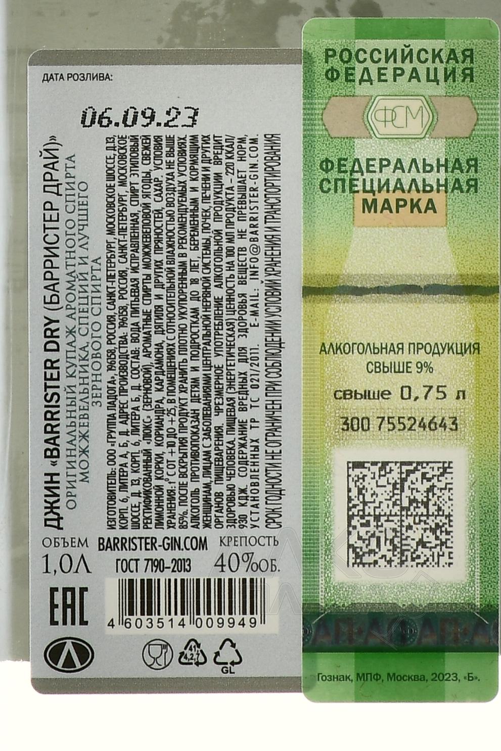 Barrister Dry джин приготовлен по всем канонам и ингредиентам, изюменкой является присутствие мускатного ореха, который делает напиток более деликатным. Прекрасен во всех коктейлях на основе джина и с тоником.