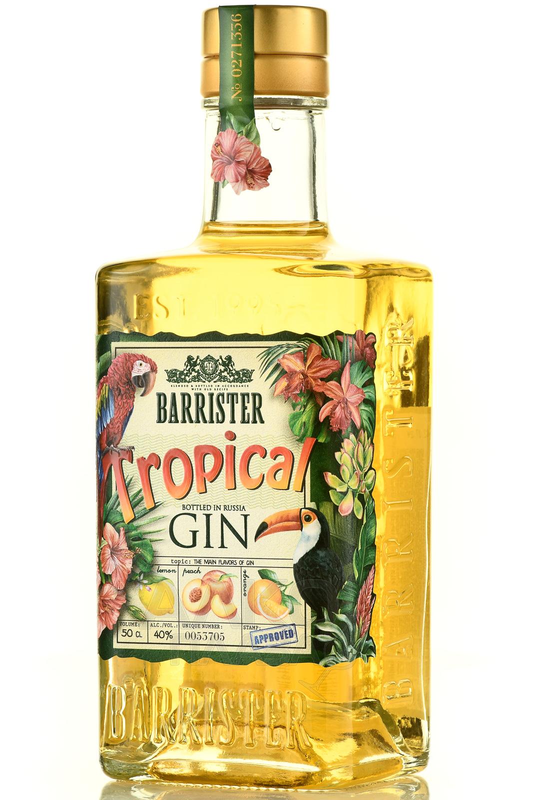 Джин Барристер Тропические Фрукты 0,5 л — новый ароматизированный сорт в линейке бренда Barrister, напоминающий о лете и отдыхе в экзотических странах. Он создан на базе традиционного британского рецепта (Лондон Драй). Основной является лучший зерновой спирт-ректификат, на котором настаивается эксклюзивная композиция ботаникалов. Среди них классические — можжевеловые ягоды, кориандр, кардамон, тмин, а также дополнительные — корка лимона, экстракты песика и красного апельсина. Джин солнечного оттенка разлит в стильную квадратную прозрачную бутылку, которая красиво будет смотреть на полке и на барной стойке. Оригинальный алкоголь можно выбрать в качестве подарка.