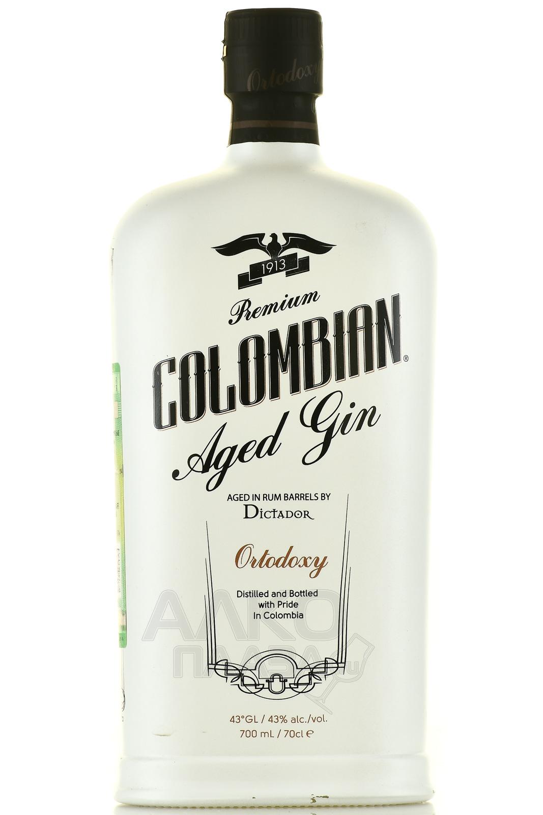 Gin Colombian Ortodoxy — колумбийский джин выдержанный в бочках из-под рома. Цвет напитка прозрачный. Аромат богат оттенками различных ягод, специй, можжевельника и имбиря. Вкус мягкий с ненавязчивой сладостью. Данный релиз выпущен объёмом 0.7л. в подарочной упаковке в наборе с бокалом, что делает Джин Коломбиан прекрасным приобретением в качестве подарка.