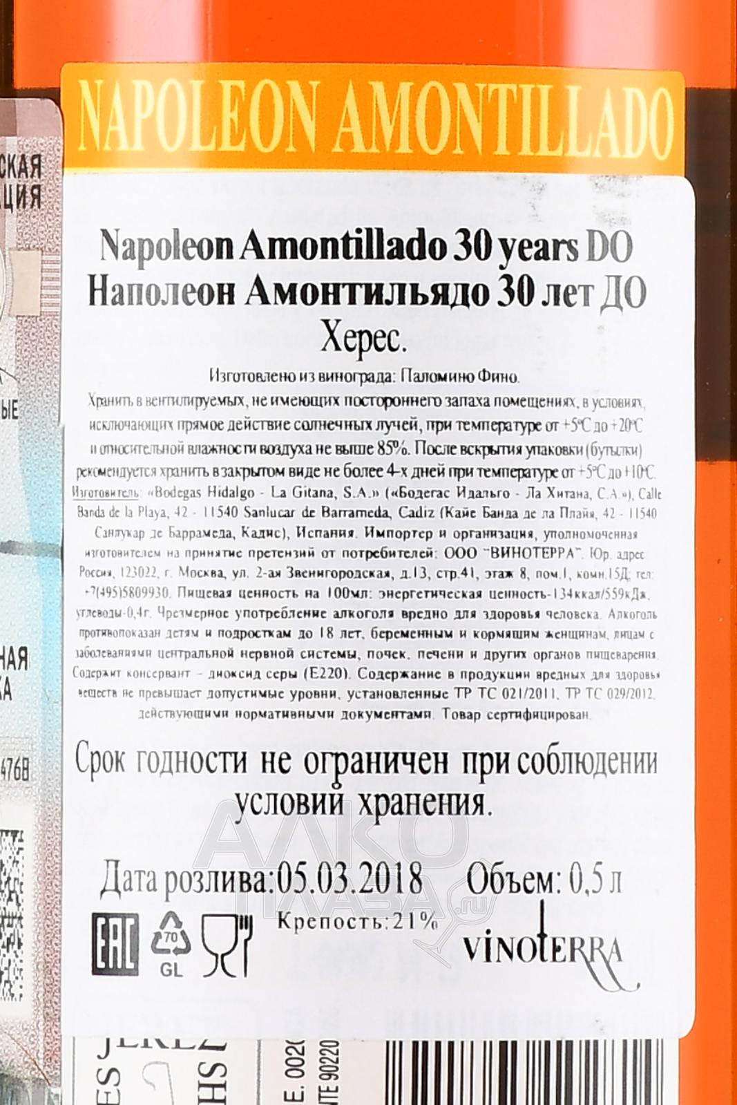 Napoleon Amontillado 30 Years DO - херес Наполеон Амонтильядо 30 лет ДО 0.5 л в п/у