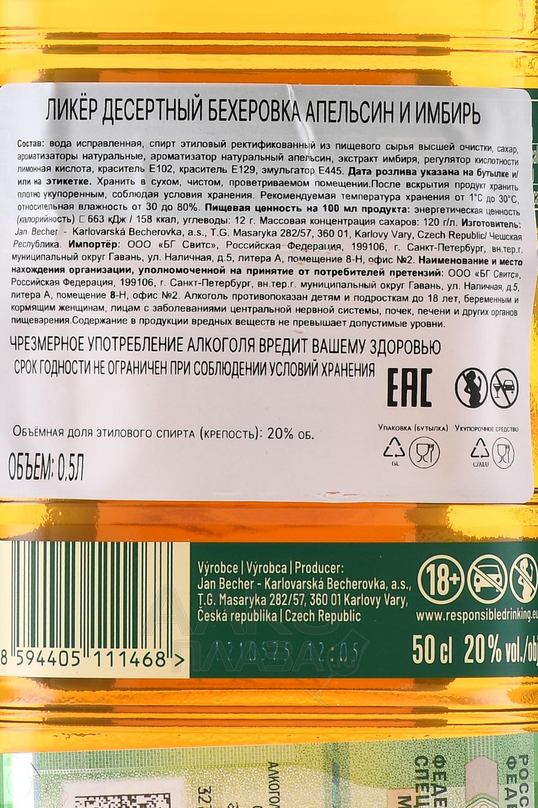 Becherovka Orange & Ginger - ликер Бехеровка Апельсин и Имбирь 0.5 л