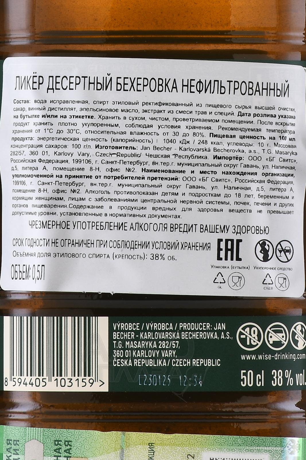 Becherovka Unfiltered - ликер Бехеровка Нефильтрованный 0.5 л