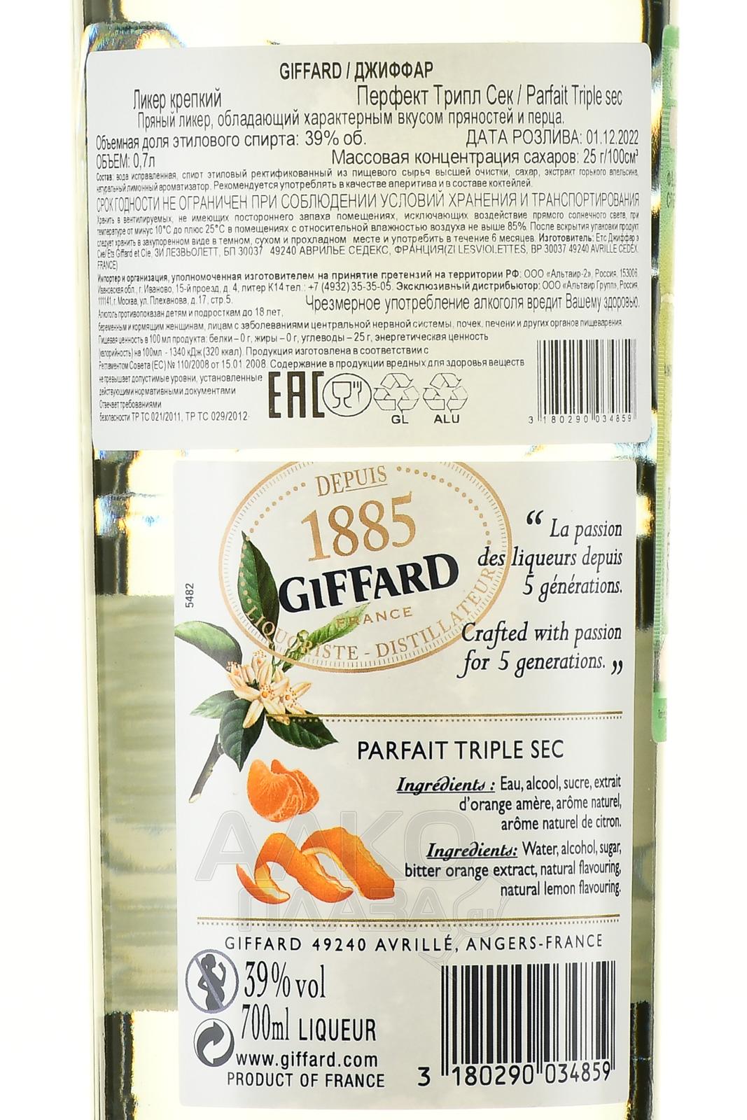 Giffard Parfait Triple Sec - ликер Жиффар Трипл Сек 0.7 л