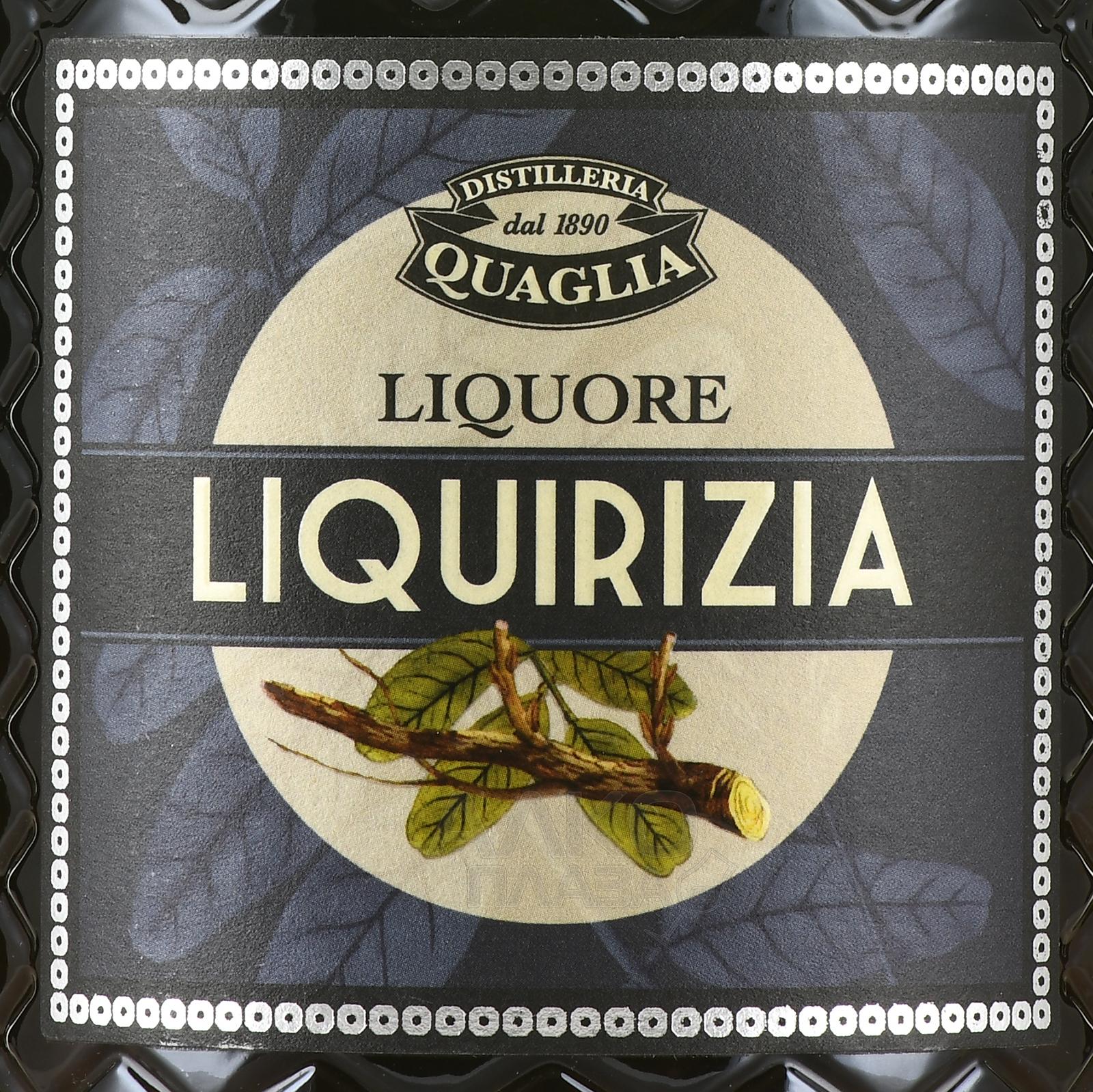 Ликер Quaglia Лакрица, поставляемый в стильных бутылках с рельефным ромбовидным узором, итальянского производства: его создание прошло в регионе Piemonte на базе аниса, корня солодки, сладких пряностей, которые специалисты семейного предприятия вымочили в спиртовой основе высшего качества. Содержание алкоголя в десертном спиртном равно 20%.
