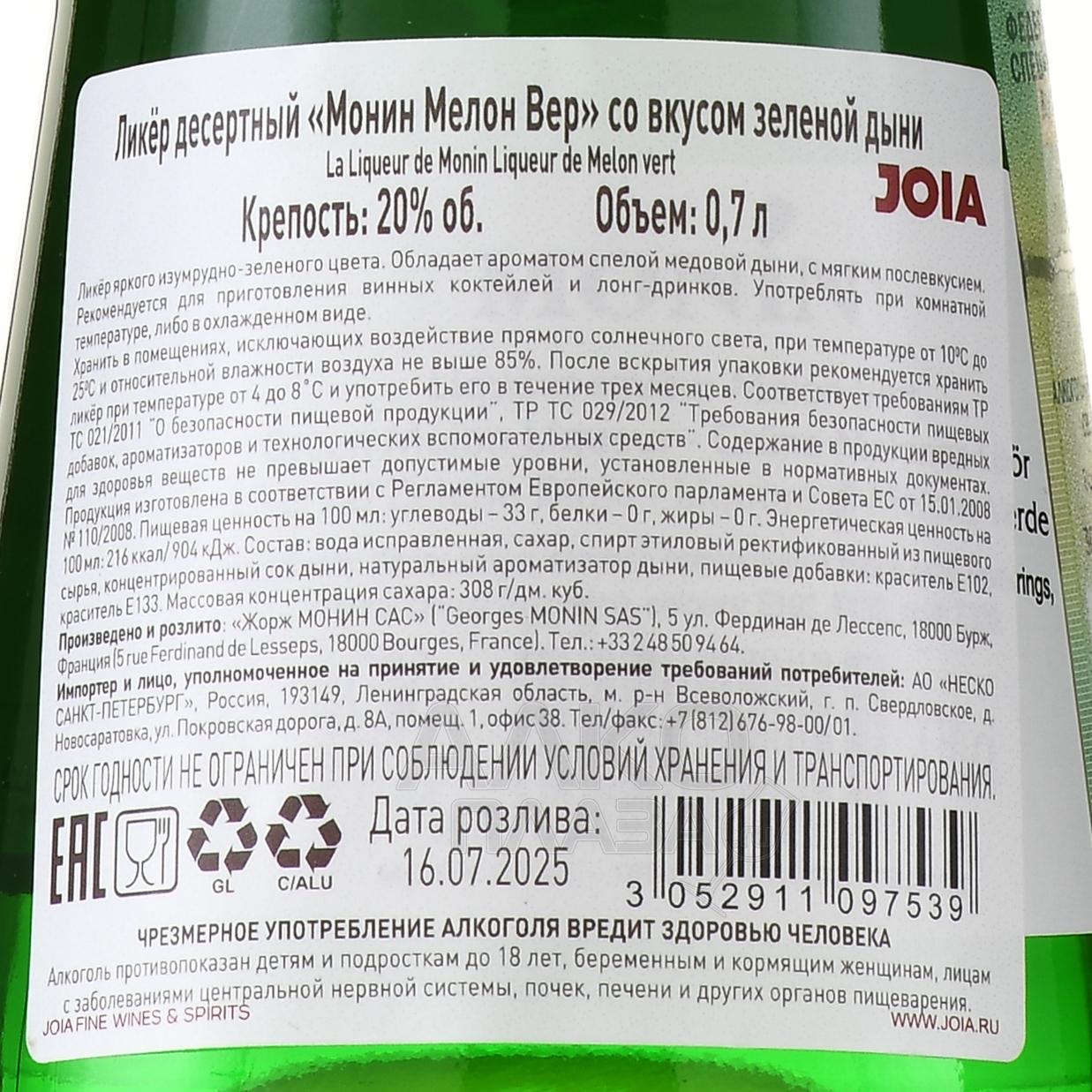 Monin Liqueur de Melon Vert - ликер Монин Дыня 0.7 л
