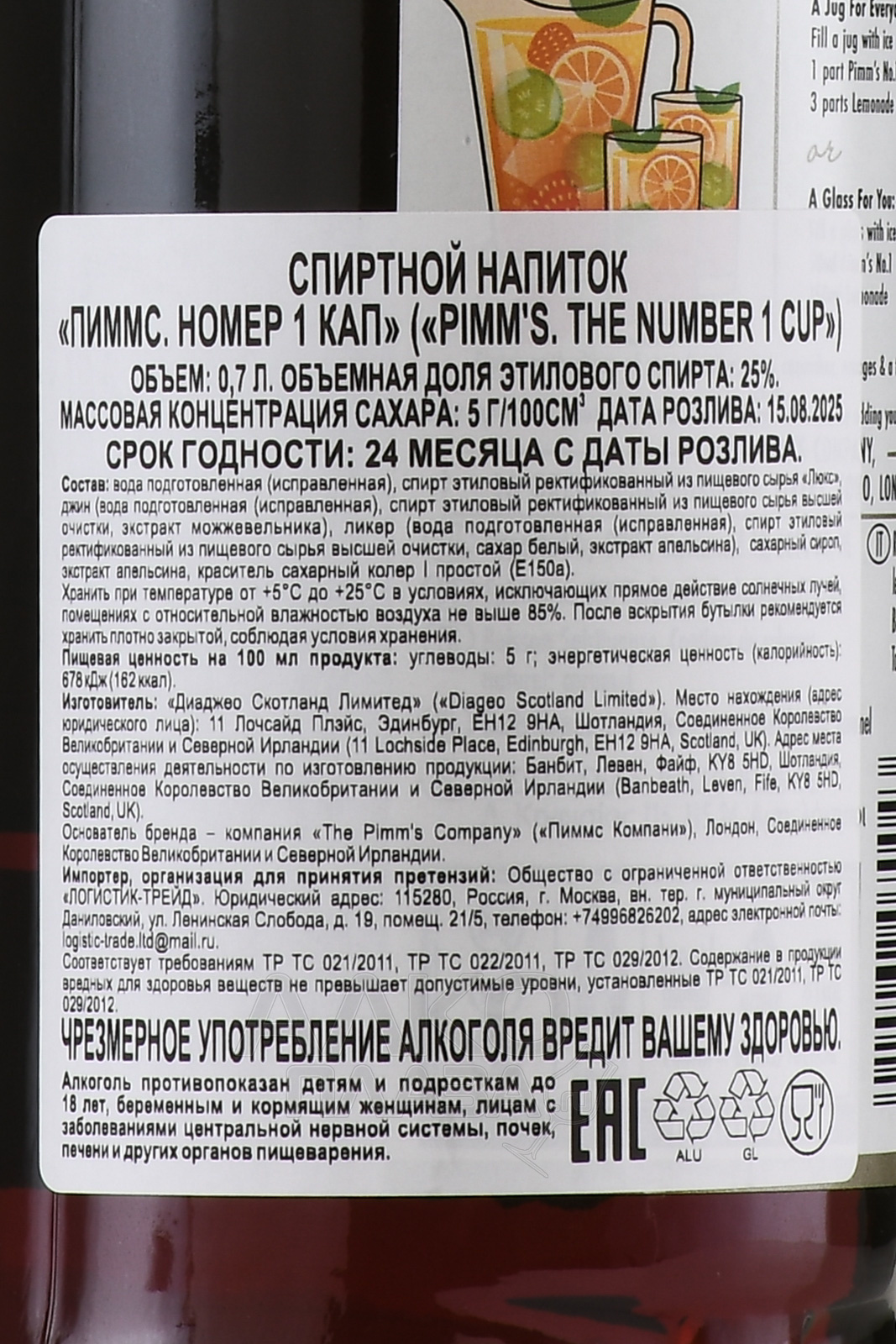 Pimm’s No 1 Cup - ликер Пиммс Номер 1 Кап 0.7 л