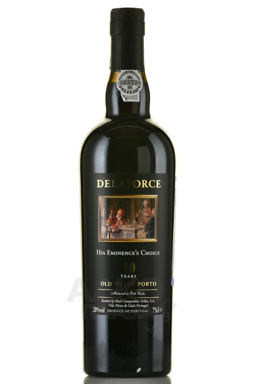 Портвейн Delaforce His Eminence`s Choice 10 Years Old Tawny Port 0,75 л – выдержанное крепленое вино, созданное в португальских традициях. Сырьем для напитка послужили красные автохтонные сорта ягод, урожаи которых созрели на плантациях в регионе Дору. Винификация проходила при контролируемой температуре. Когда в сусле осталась примерно половина от начальной концентрации природных сахаров, его смешали с виноградным спиртом и дали отстояться в больших чанах. Завершающим этапом производства стала десятилетняя выдержка в дубе в погребах города Вила-Нова-де-Гайя. Вариация выпускается с 1930-х годов, а ее название в переводе означает «Выбор Его Высокопреосвященства» – намек на королевское происхождение винодельни.