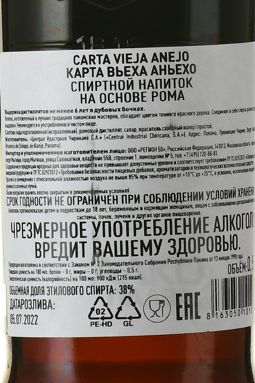 Carta Vieja Panama - ром Карта Вьеха Аньехо 0.5 л Панама