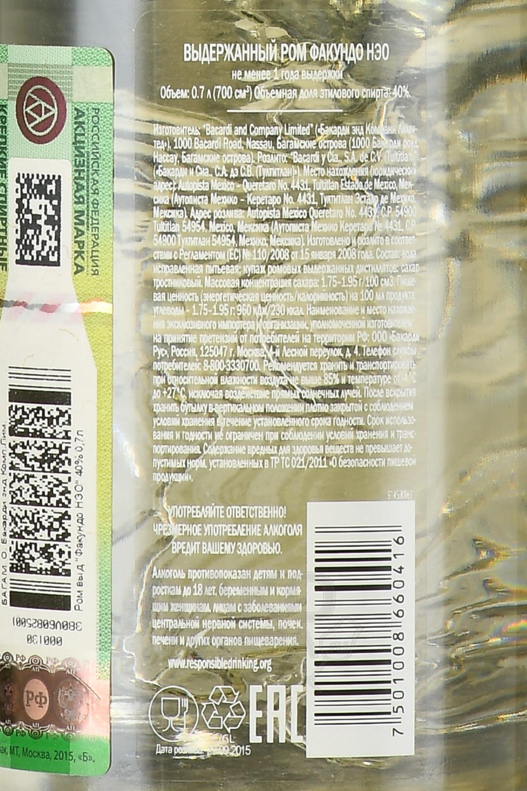 Facundo Neo Silver 8 years ( Факундо Нео Сильвер 8 лет ) - ароматы белых фруктов и ананаса просто поражают и манят своей насыщенностью, вкус радует мягкостью и разнообразием - пастила, заманчивые древесные оттенки, цитрусы, корица, мед. Один из премиальной линейки Facundo Bacardi, который несомненно стоит попробовать, чтобы ознакомиться с продукцией самого известного производителя рома.