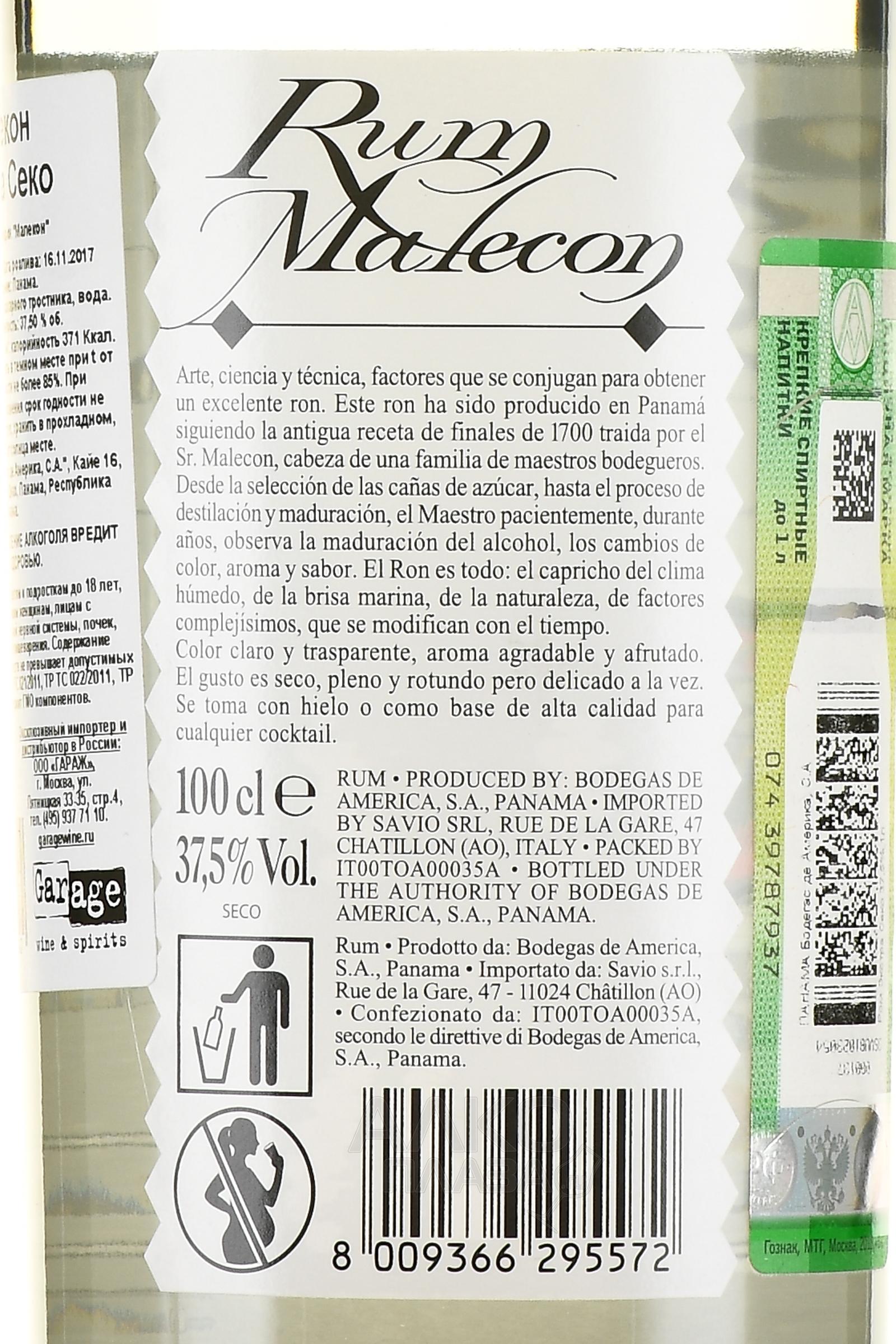 Rum Malecon Extra Secco - ром Малекон Экстра Секко 1 л