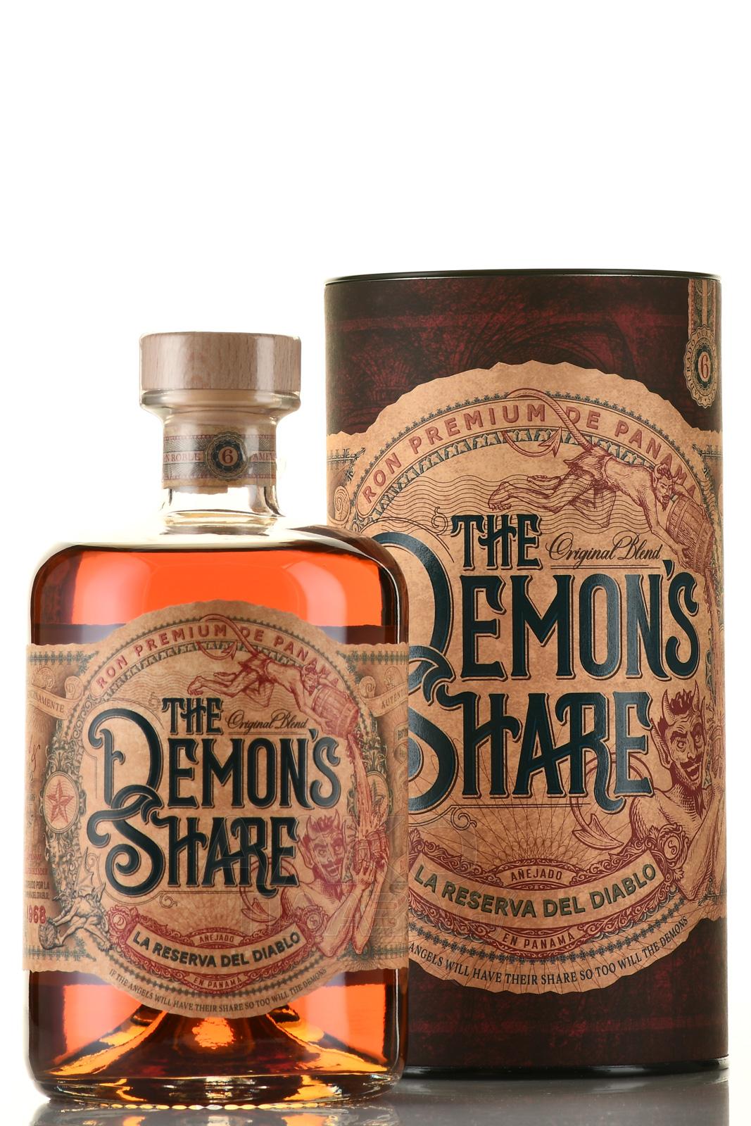 Ром The Demon`s Share 6 лет 0,7 л в тубе стоит выбрать на роль оригинального праздничного презента. Он поставляется в стильной подарочной упаковке и обладает неповторимым характером, за который был награжден медалью на престижном конкурсе World Drinks Awards. Алкоголь произведен в Панаме из местного сахарного тростника, из которого получают мелассу. Сброженное сусло перегоняют в колоннах непрерывного цикла. При дистилляции добавляются настои цедры и специй. Затем спирты помещают на 6 лет в обожженные дубовые бочки для выдержки. Название рома в переводе означает «Доля дьявола». В Панаме существует поверье, что за выдержкой присматривают не ангелы, а 7 мелких бесов, которые забирают из бочек свою долю.