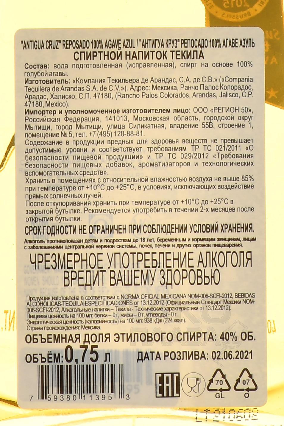 Текила Antigua Cruz Reposado 100% Agave Azul 0.75 л в п/у — отличный образец в подарочном оформлении, изготовленный из сока 100-процентной голубой агавы, которая поспела на плантациях штата Халиско. Качественная текила с уровнем спиртуозности 40 градусов выдерживалась в барриках из древесины дуба на протяжении полугода. Элитный уровень продукции от мексиканского производителя Antigua Cruz обеспечивает общий контроль на всех этапах производства.