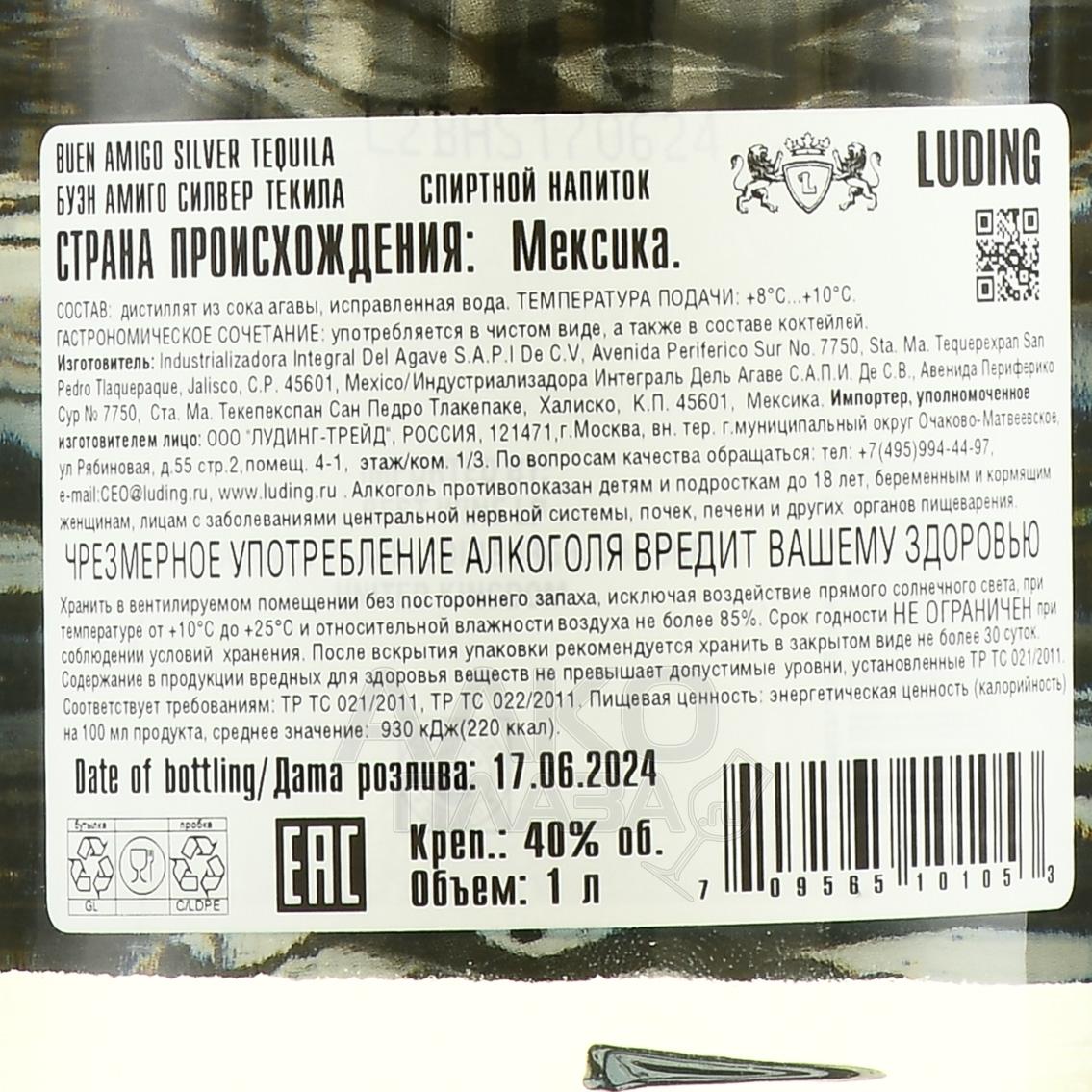 Текила Buen Amigo Silver 1 л не подвергается выдержке и относится к молодым сортам. Она сохраняет безупречно прозрачный оттенок и свежий вкусоаромат. Для изготовления алкоголя используется голубая агава Вебера, которая выращивается на высокогорных участках в штате Халиско. Сырье измельчают с помощью вальцовой мельницы, отжимают и пропаривают, а затем сбраживают в стальных резервуарах. Методом двойной перегонки получают спирты, которые дважды процеживают через уголь и фильтр-пресс. На последнем этапе текила разбавляется водой до 40% и разливается в стильные литровые бутылки.