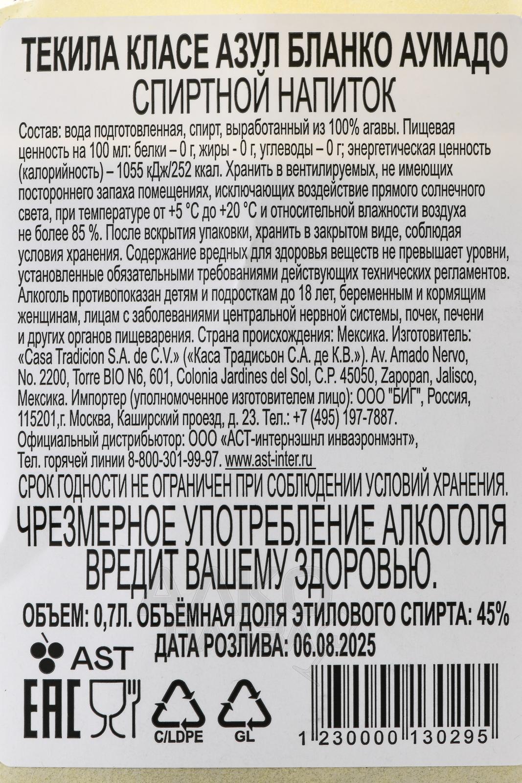 Clase Azul Blanco Ahumado - текила Класе Азул Бланко Аумадо 0.7 л в п/у