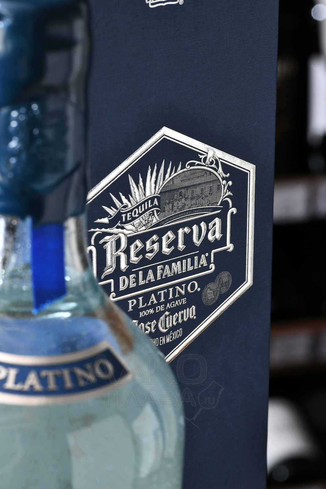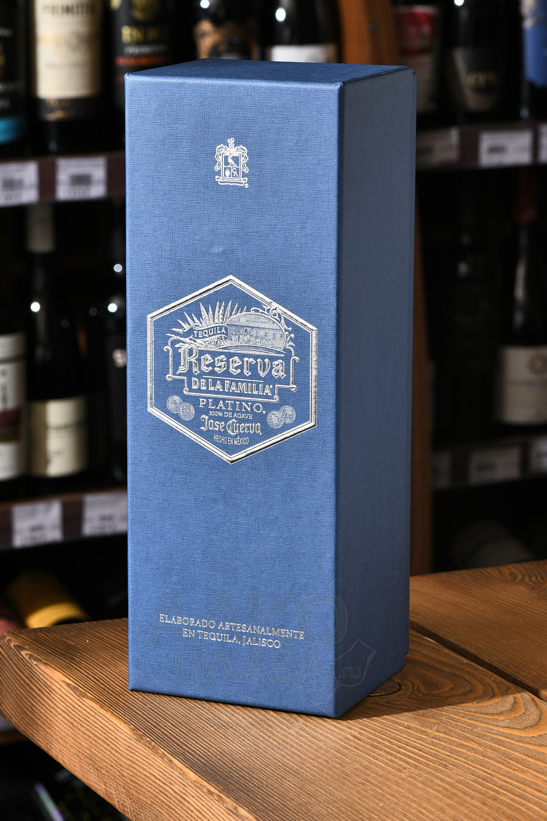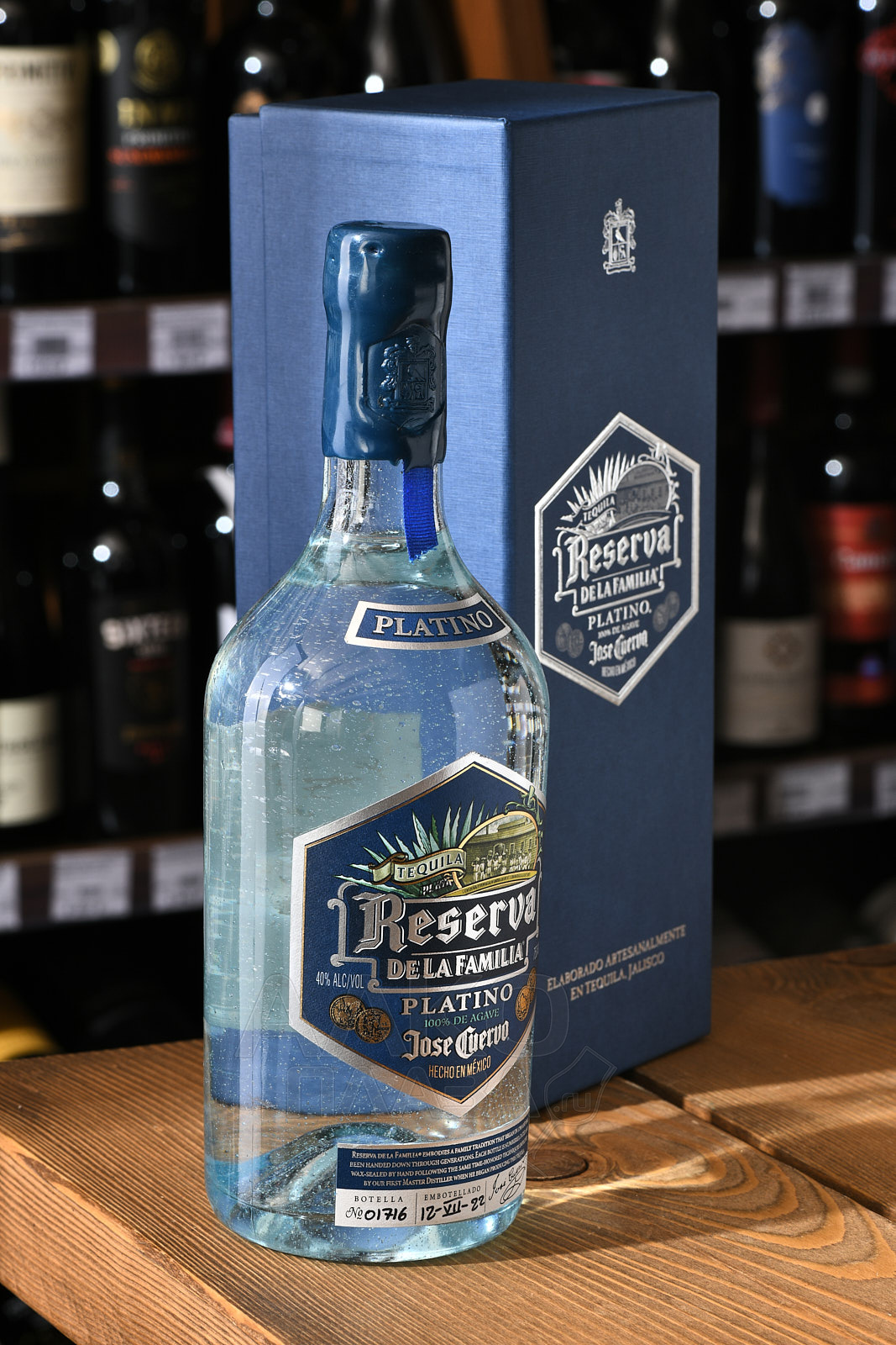 Jose Cuervo Platino Reserva de la Familia - премиальная текила приготовленная на 100% из голубой агавы из штата Халиско. Производство включает в себя специальный отбор лучших частей агавы, что концентрирует и раскрывает вкус напитка. Готовая текила разливается в пронумерованные бутылки и упаковывается в подарочную коробку.
