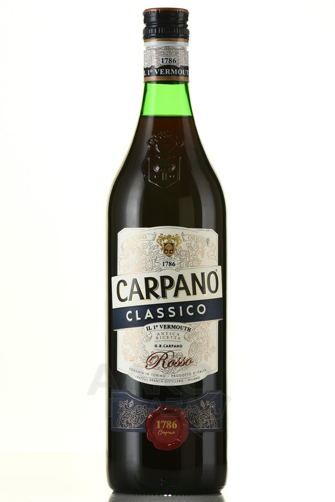 Вермут Carpano Classico 1 л изготовлен по старинному итальянскому рецепту. Его основа — натуральное вино из белого винограда, собранного спелым в удачный год урожай. Дополнительные ингредиенты, формирующие богатство и сложность вкусоароматики: апельсиновая цедра, полынь, сахар, этиловый спирт. Перед розливом по литровым стеклянным емкостям с отвинчивающимися круглыми крышками настойка подверглась фильтрации и контролю качества. В 2018 ей присудили престижную награду на конкурсе International Spirits Challenge — серебряную медаль.
