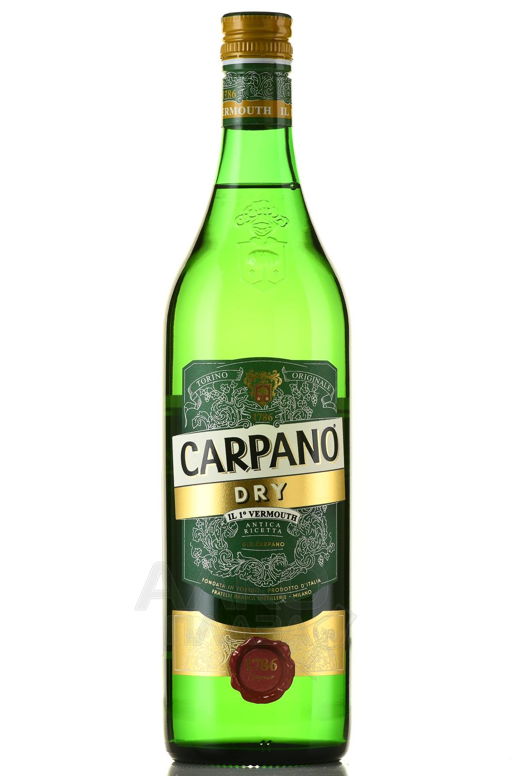 Вермут Carpano Dry 1 л — сухая вариация итальянского душистого алкоголя на травах, ставшая популярной во многих странах мира. 18-градусный напиток, содержащий комплекс растительных добавок (например, душицу, полынь), вино из белого винограда и спирт высшей категории, заслужил признание критиков на международном конкурсе «International Spirits Challenge» в 2018 году, подтвердившее достоинства органолептики. Сырье прошло мацерацию и перегонку, а после — фильтрацию. Тарой вермута является литровая бутылка зеленого цвета, дополненная крышкой на винтовой резьбе, которая удобна в эксплуатации.