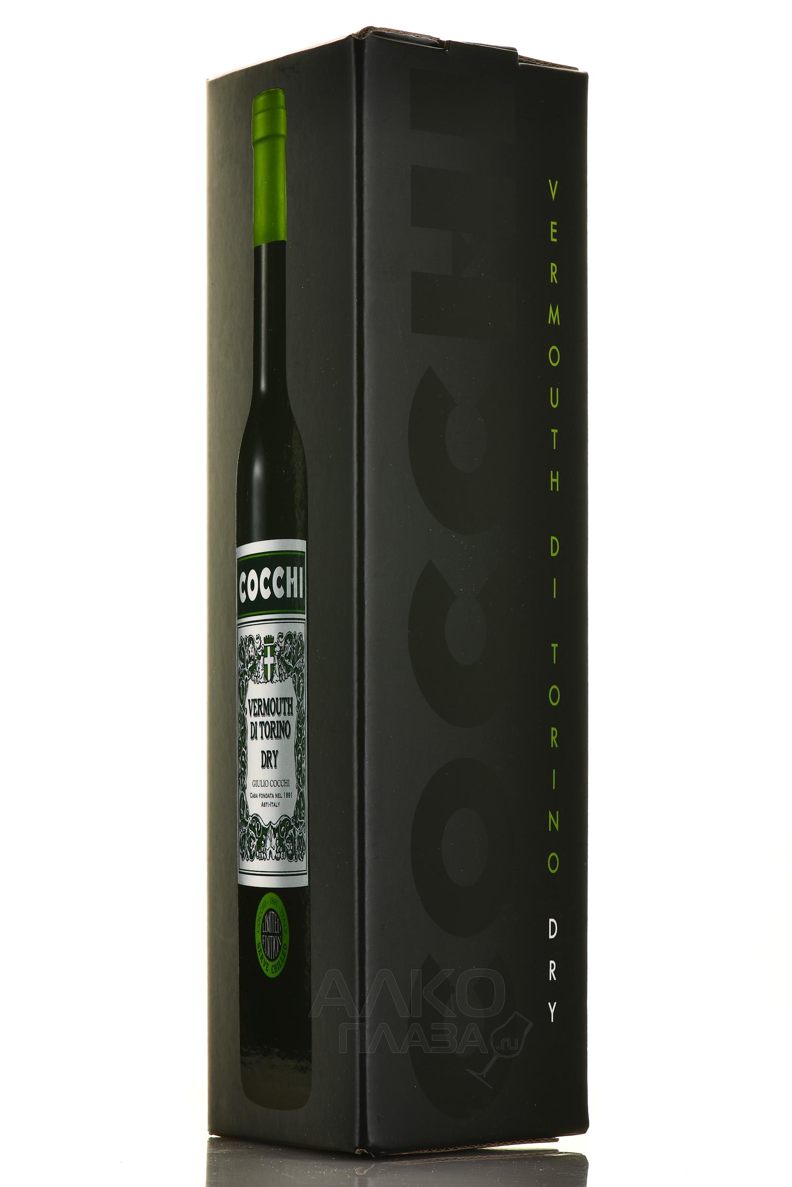 Вермут Cocchi Vermouth di Torino Dry производится в итальянском Пьемонте (область Асти) из винограда белых сортов. Его подвергают ферментации для получения вина, на котором настаивают комплекс душистых ингредиентов: цитрусовую цедру, полынь, альпийские травы и т. п. Содержание сахара в вермуте не превышает 4%, а его крепость равна 18 градусам. Бутылка с напитком комплектуется подарочной картонной коробкой прямоугольной формы.