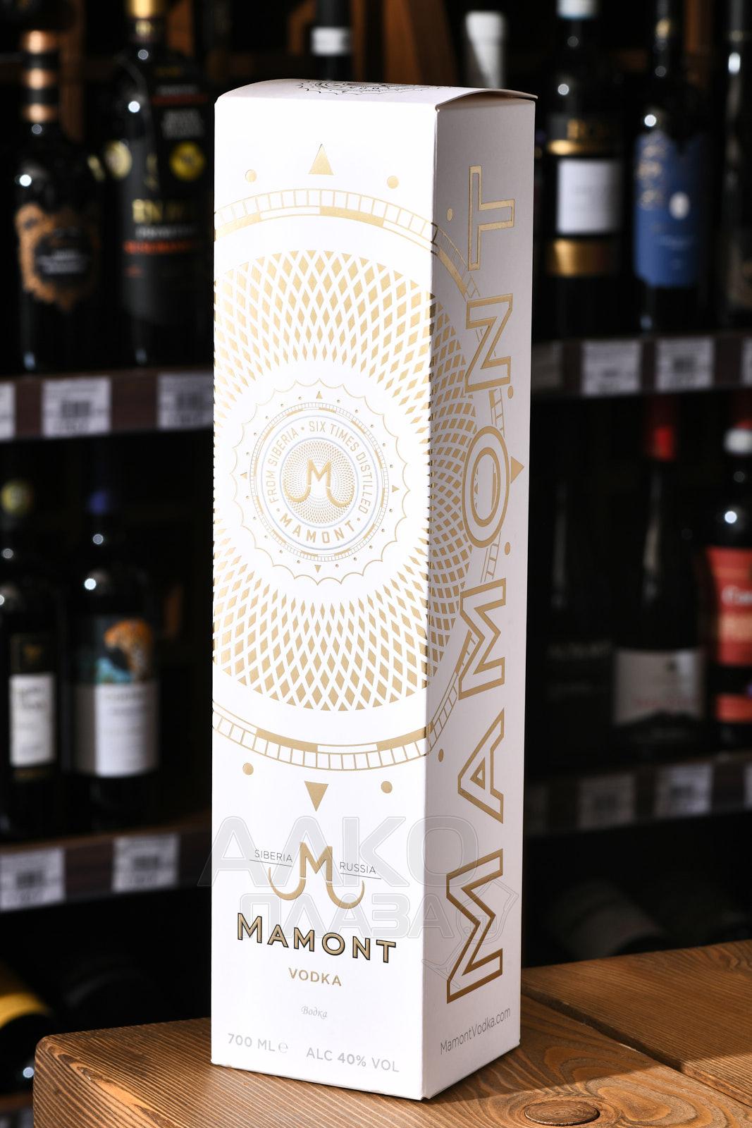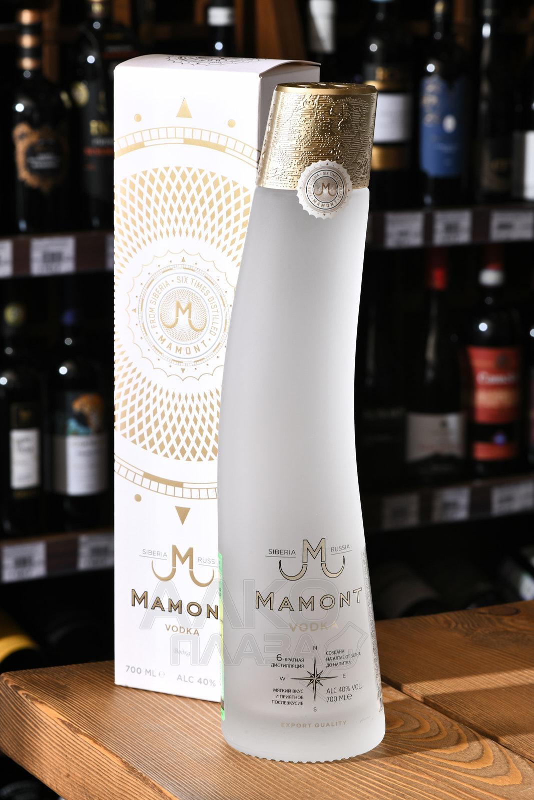 «Мамонт» – водка премиум-класса крепостью 40%. Отличается идеальной прозрачностью и мягким вкусом с нотами кедровых орехов. Напиток расфасовывают в бутылки матового стекла, выполненные в форме бивня мамонта (объёмом 0,5л и 0,7 л) и упакованные в фирменные белые картонные коробки. Также в продаже есть бутылки объёмом 0,7 л в подарочной упаковке. Напиток подают холодным (при температуре от +5 до +7 ºС) к горячим мясным блюдам, дичи и печёной рыбе, морепродуктам и салатам.
