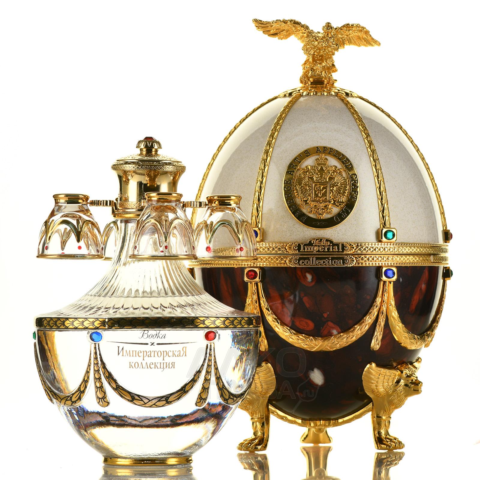 Водка Imperial Collection Faberge Super Premium 0,7 л в п/у представлена в футляре в виде яйца Фаберже (расцветка жемчуг-рубин) ручной работы. Это настоящий шедевр, лимитированный коллекционный алкоголь, который дарят по особенно выдающему поводу. Его можно вручить высоким гостям из-за рубежа или иностранным деловым партнерам как русский сувенир с историческим колоритом (Карл Фаберже создавал драгоценные пасхальные яйца для членов российской императорской семьи). Роскошно оформленная водка не просто привлекает внимание, а воспринимается как своего рода произведение искусства. Футляр-яйцо украшен царским гербом, позолоченными элементами, цветными кристаллами и держится на ножках в виде львиных лап. Внутри него — графин из венецианского стекла с позолотой и 4 стопки. Сама водка произведена из отборных пшеницы и ржи и воды из Ладожского озера, которая славится своей чистотой. Спирт делается из соложеного зерна с помощью современной технологии ректификации. Водка проходит 12 этапов фильтрации (через березовый уголь, кварцевый песок, одноклеточные водоросли, мембраны с серебром) и приобретает непревзойденную прозрачность и мягкость.
