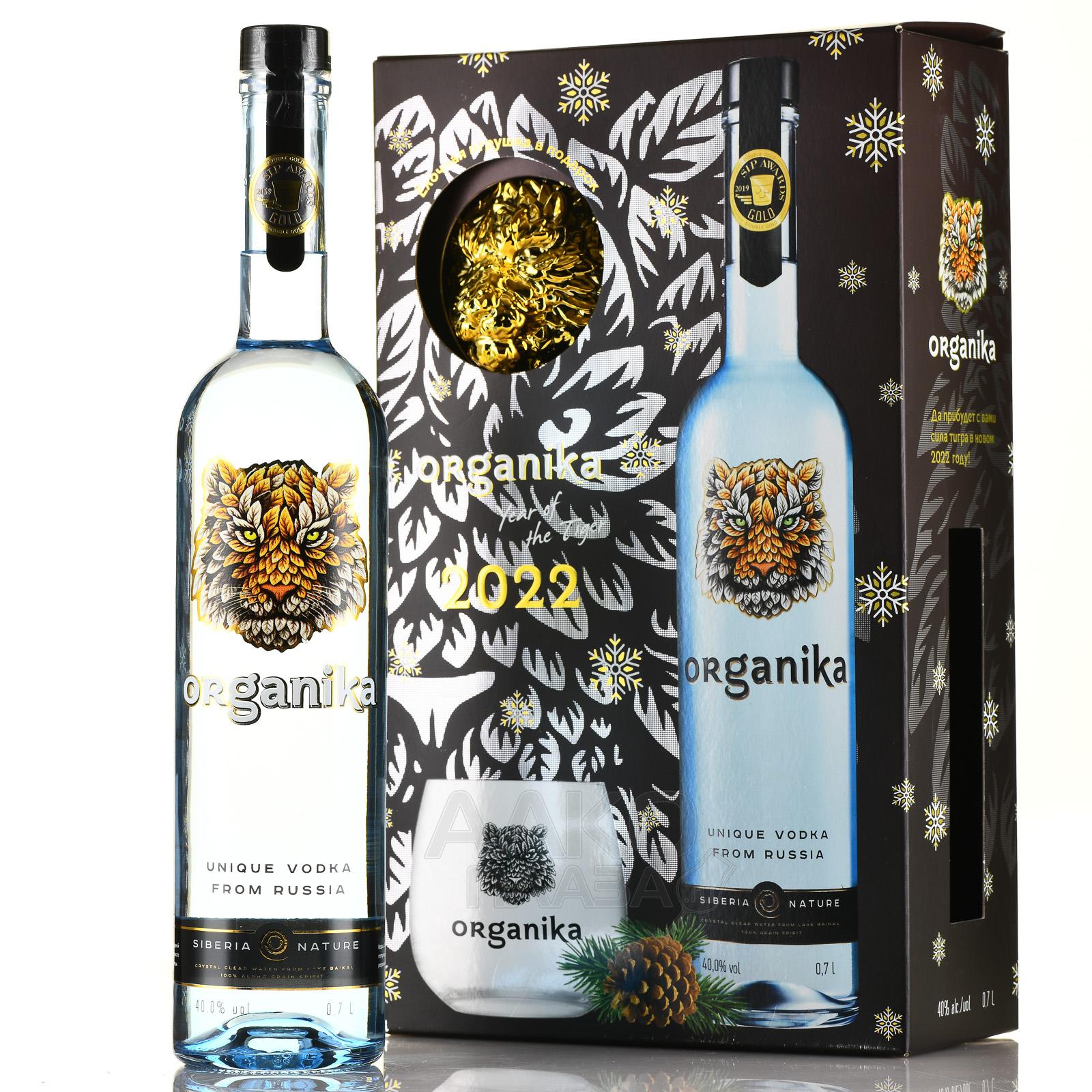 Водка Organika 2022 Тигр стакан+игрушка в п/у как нельзя лучше подойдет на роль презента на новогодние праздники. Сувенирный сет был выпущен лимитированной партией. Производитель презентовал его в честь года Тигра по восточному календарю. В подарочный набор входит ультрапремиальный алкоголь, созданный по оригинальной рецептуре. Основой является зерновой ректификованный спирт высшей степени очистки «Альфа». Его купажировали водой «Легенда Байкала», которую добывают из самого большого в мире озера. В водку добавляют натуральный мед и спиртовой настой из яблок. Напиток разливается в высокую прозрачную бутылку, на которой изображен амурский тигр — редкий вид, занесенный в Красную книгу. Его же можно увидеть на подарочном стакане, который включен в сувенирный комплект. В виде этого животного выполнена елочная золотая игрушка. Все предметы упакованы в красивый гифт-бокс.
