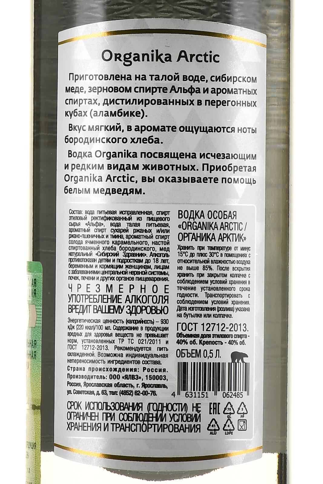 Водка Organika Arctic 0,5 л создана из натуральных ингредиентов высокого качества. Ее основу составляет зерновой спирт-ректификат класса Альфа, разбавленный до стандартной крепости талой питьевой водой из озера Байкал. Мягкий вкус и приятный аромат напитку придают дистилляты ржаных сухарей, тмина и карамельного ячменного солода, полученные путем перегонки в традиционных кубах-аламбиках. Также в состав купажа входят настой душистого бородинского хлеба и мед «Сибирский Здравник». Кроме безупречного вкуса спиртного, производитель обещает помощь дикой природе и вымирающим видам животных – часть своего годового оборота компания отчисляет в некоммерческие фонды соответствующего направления.