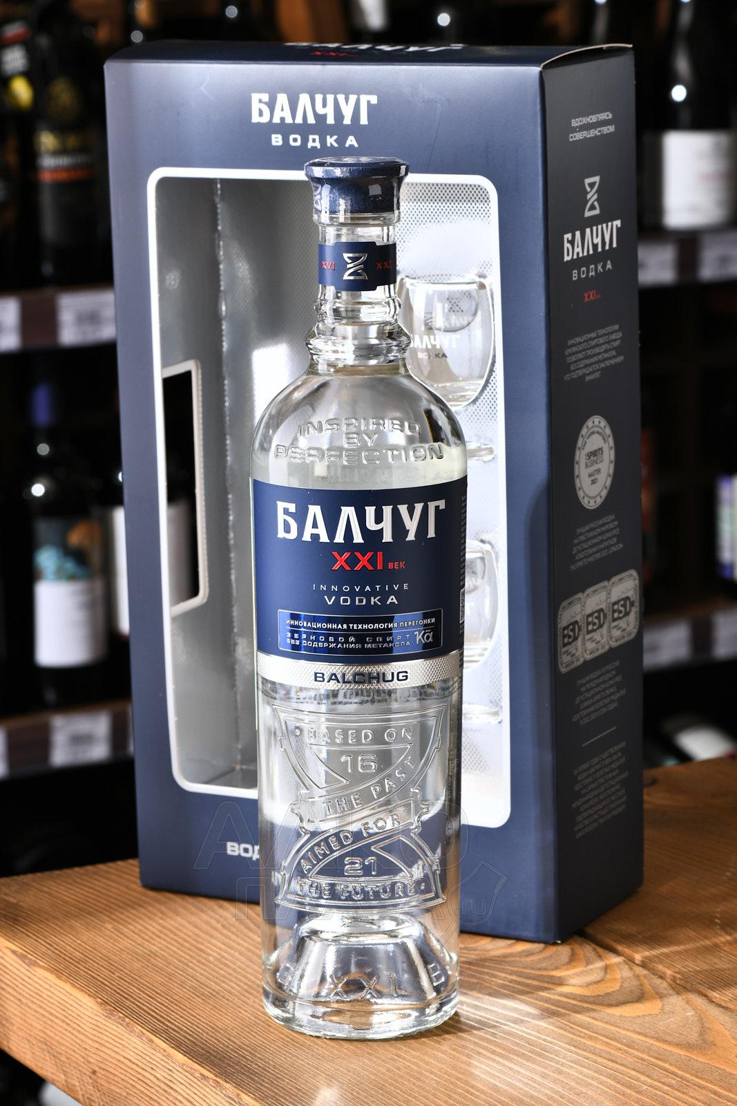 Водка Балчуг XXI век 0,7 л в п/у + 2 стопки — стильно оформленный презент, который уже готов к вручению по какому-либо торжественному поводу. Российский алкоголь создан на стыке исторических традиций и инноваций. Рецептура осталась классической: спирт (солодовый) ректификованный категории «Альфа» и специально подготовленная мягкая вода. Современная технология перегонки позволяет получать спиртовую основу без метанола (применяется усовершенствованная бражно-ректификационная установка, в которой есть дополнительная очищающая колонна). Водку перед розливом тщательно фильтруют активированным углем, никакие дополнительные ингредиенты в нее не добавляют. На стекле бутылки видны песочные часы, олицетворяющие собой течение времени — от прошедших веков к настоящему и будущему. Горлышко имеет форму навершия царского скипетра. Название Балчуг — отсылка к острову, на которой в XVI веке указом Ивана Грозного был открыт первый на Руси кабак. Качество инновационной водки проверялось в лаборатории Всероссийского НИИ пищевых биотехнологий. Алкоголь попал в рейтинг Forbs как «Лучшая российская водка» и был отмечен аналогичным титулом на международном конкурсе The Spirits Masters.