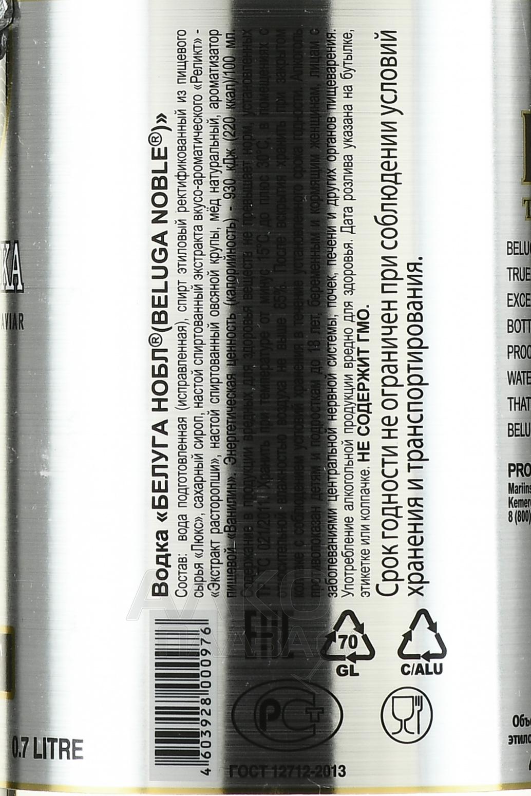 Beluga Noble - водка Белуга Нобл 0.7 л в п/у + бокал