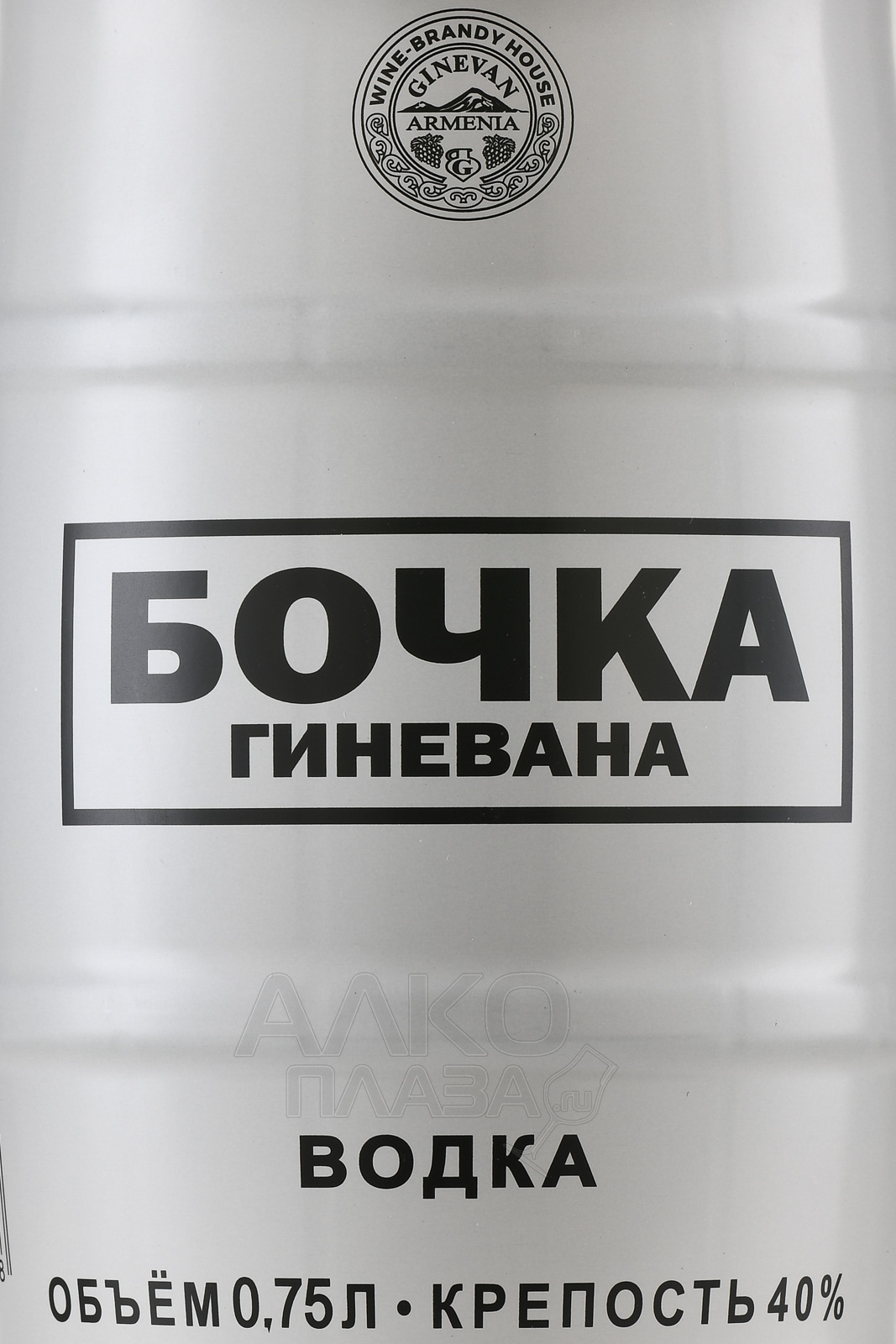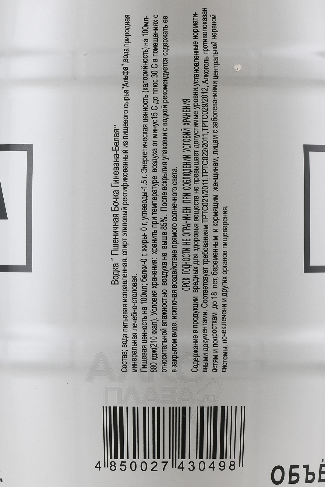 Водка Бочка Гиневана Пшеничная белая 0.75 л