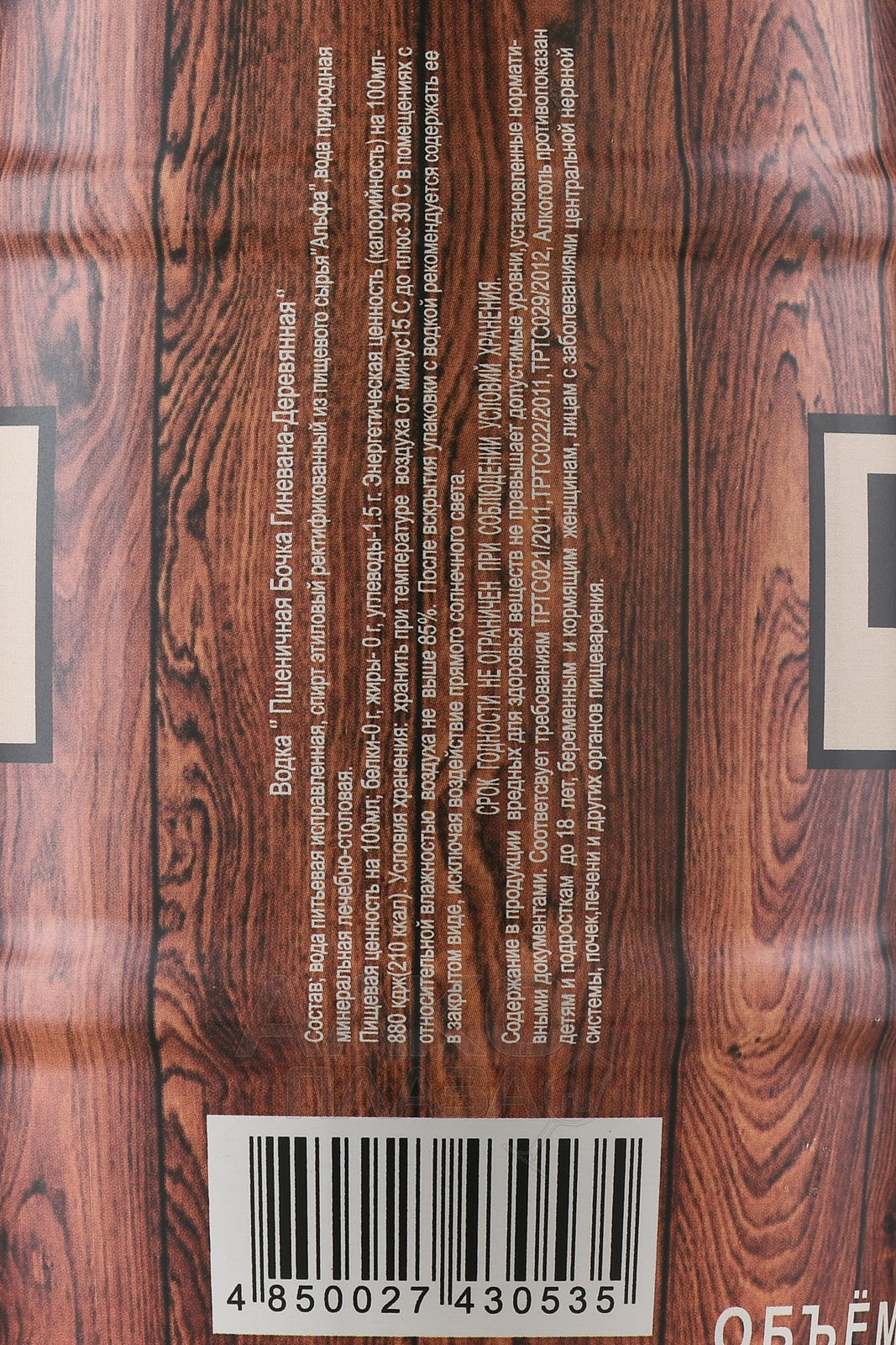 Водка Бочка Гиневана Пшеничная деревянная 0.75 л