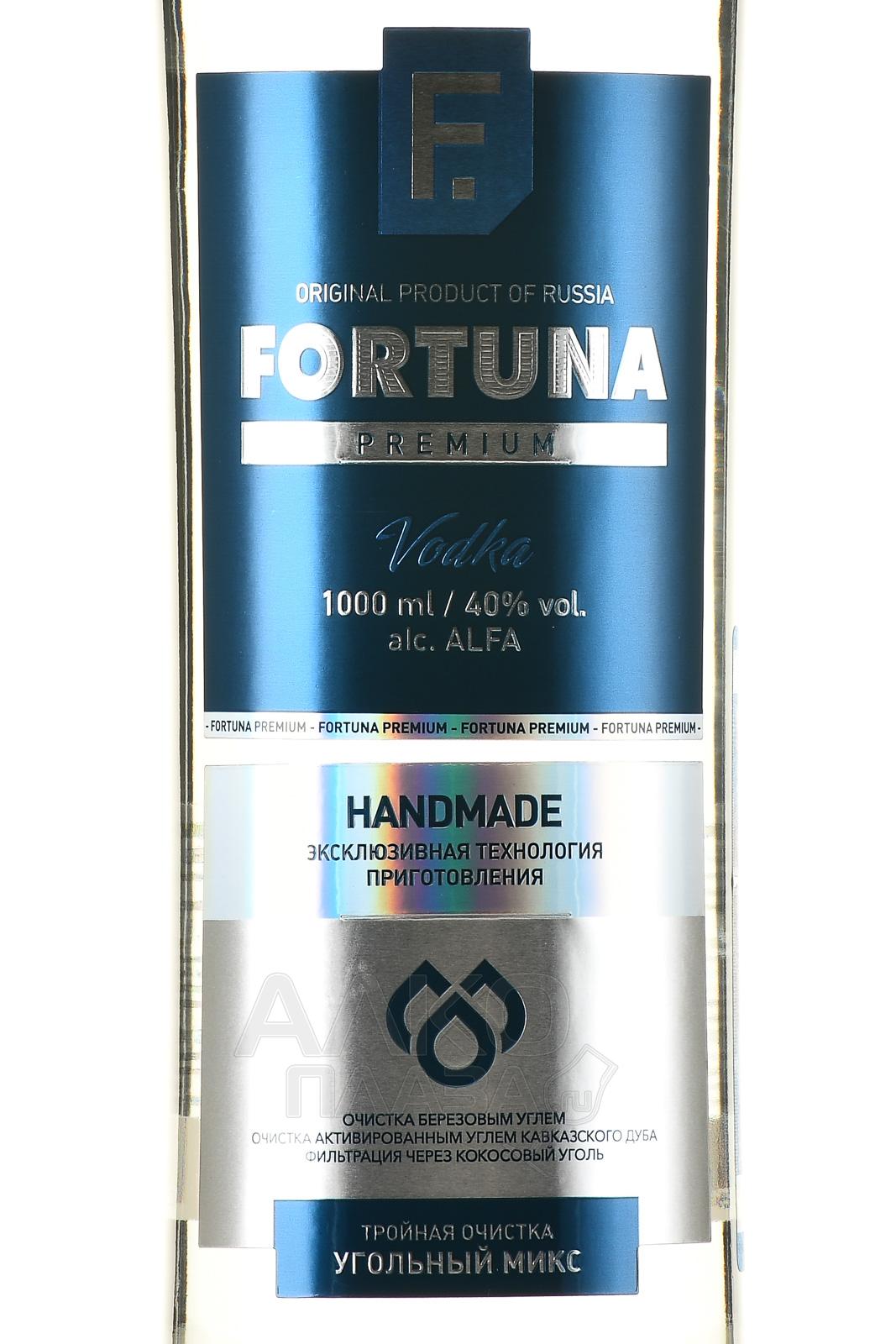 Водка Фортуна Премиум 1 л станет прекрасным подарком и украсит собой праздничное застолье. В стильной бутылке увеличенного объема представлен элитный алкоголь из спирта высшей степени очистки «Альфа». Его получают путем ректификации из отборной пшеницы и подвергают трехступенчатой фильтрации — пропускают через кокосовый уголь, обогащенный ионами серебра, через активированный уголь и через березовый уголь. В напиток добавляют натуральный мед и умягченную воду. Водка имеет крепость 40%. Ее дизайн в стиле хай-тек выполнен с использованием передовых технологий.