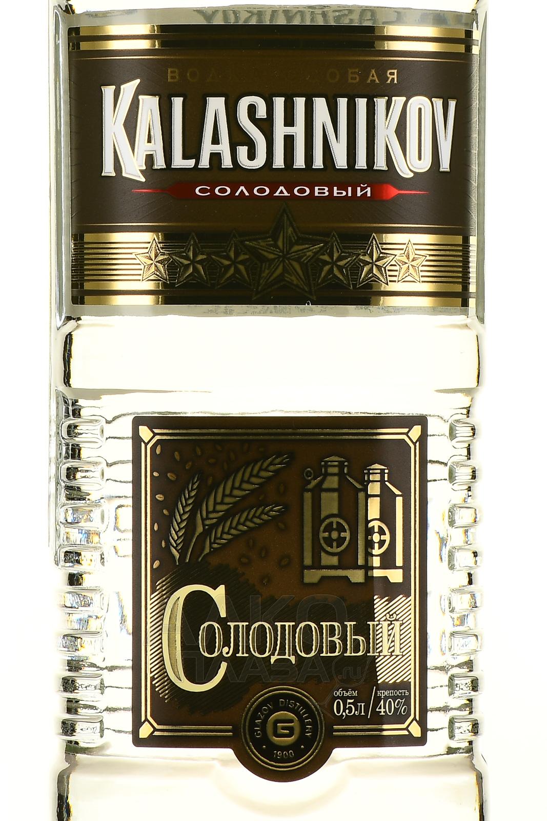 Водка Калашников Солодовый 0,5 л – сорт спиртного премиум-класса. Для его изготовления используется специальным образом подготовленная вода и спирты стандарта Люкс. В напиток также добавлены настои свежего хлеба и ржаных сухарей. После смешивания компонентов купаж проходит через песочные и угольные фильтры, очищаясь от вредных примесей. Каждый образец из партии перед отправкой на продажу подвергают визуальной оценке.