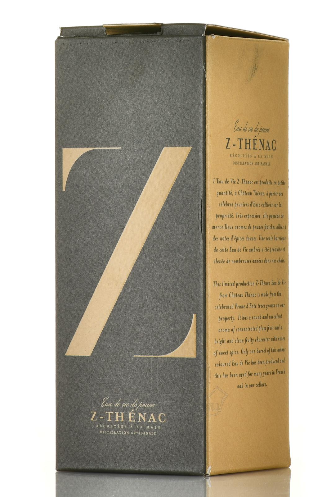 Водка сливовая Z-Thenac Ambree 0,35 л в п/у — интересный вариант для праздничного подарка. Плодовый французский алкоголь выпускается в изящной миниатюрной бутылке в комплекте со стильным гифт-боксом. Основной компонент состава — дистиллят из спелых слив, выращенных на территории поместья Шато Тенка в Бордо. В процессе перегонки отсекаются «головные» и «хвостовые» фракции, а остается только «сердце» - чистейший о-де-ви. Его выдерживают длительное время в дубовой бочке, затем разбавляют очищенной водой до крепости 43%.